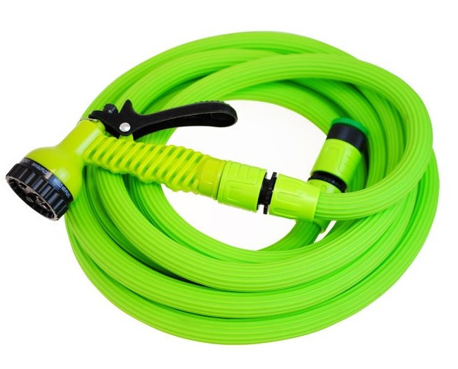 Особопрочный суперэластичный шланг. Это качественный шланг с пвх покрытием и специальной пластиковой внутренней конструкцией. Шланг имеет свойство под напором воды увеличиваться в размерах до 3-х раз! И при отключении подачи воды - возвращаться в исходное положение. Шланг легкий, компактный, простой в использовании, усилен ребрами жесткости по всей длине шланга.