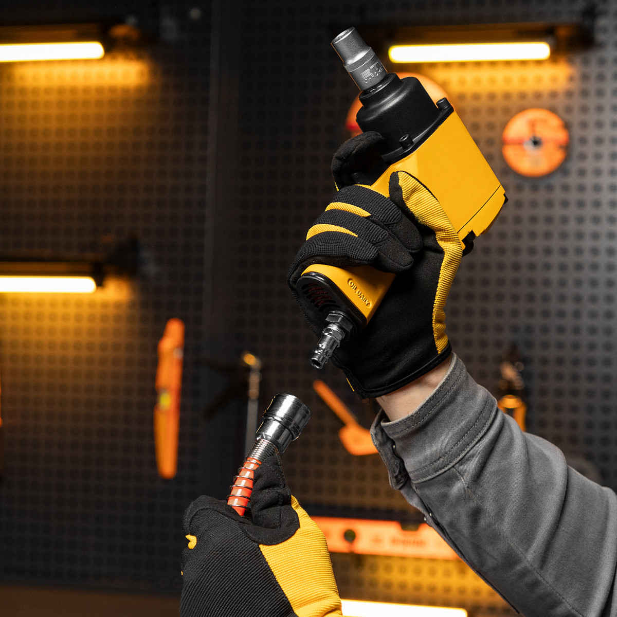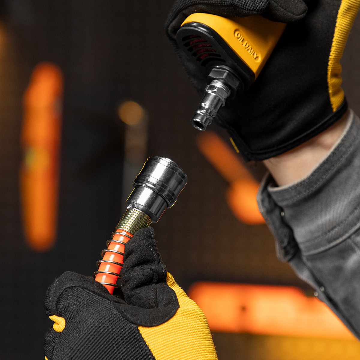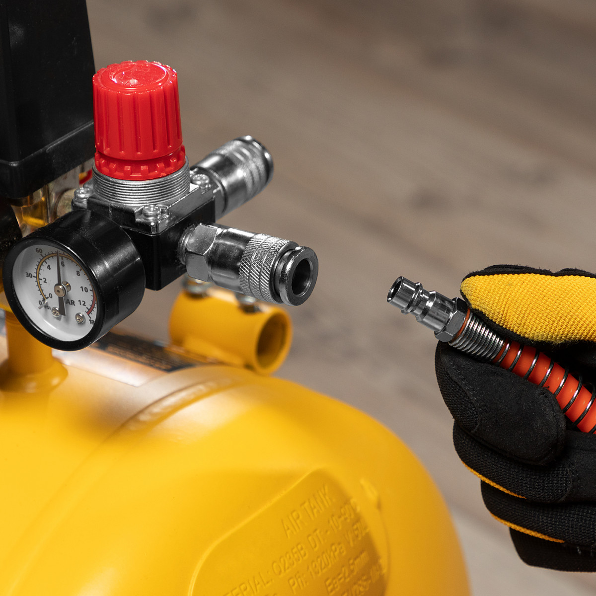 - Комфортная работа — быстросъемные соединения «рапид» позволяют легко подключать рукав к компрессору и экономят время при смене пневмоинструментов.