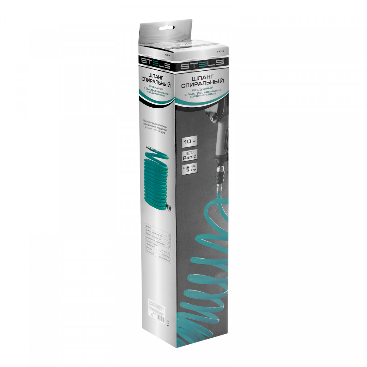 Шланг спиральный воздушный 8 х 12 мм, 18 бар, с быстросъемными соединениями, 10м Stels