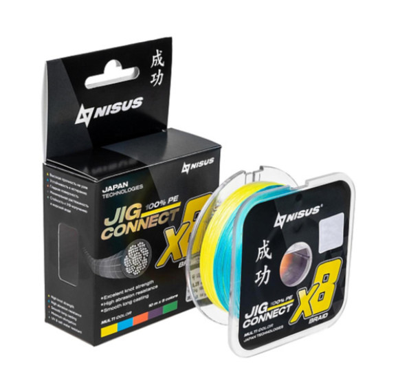 Шнур JIG CONNECT X8 PE Multicolor 150m #2.0, 0.22mm 15.5kg/22.9LB NISUS