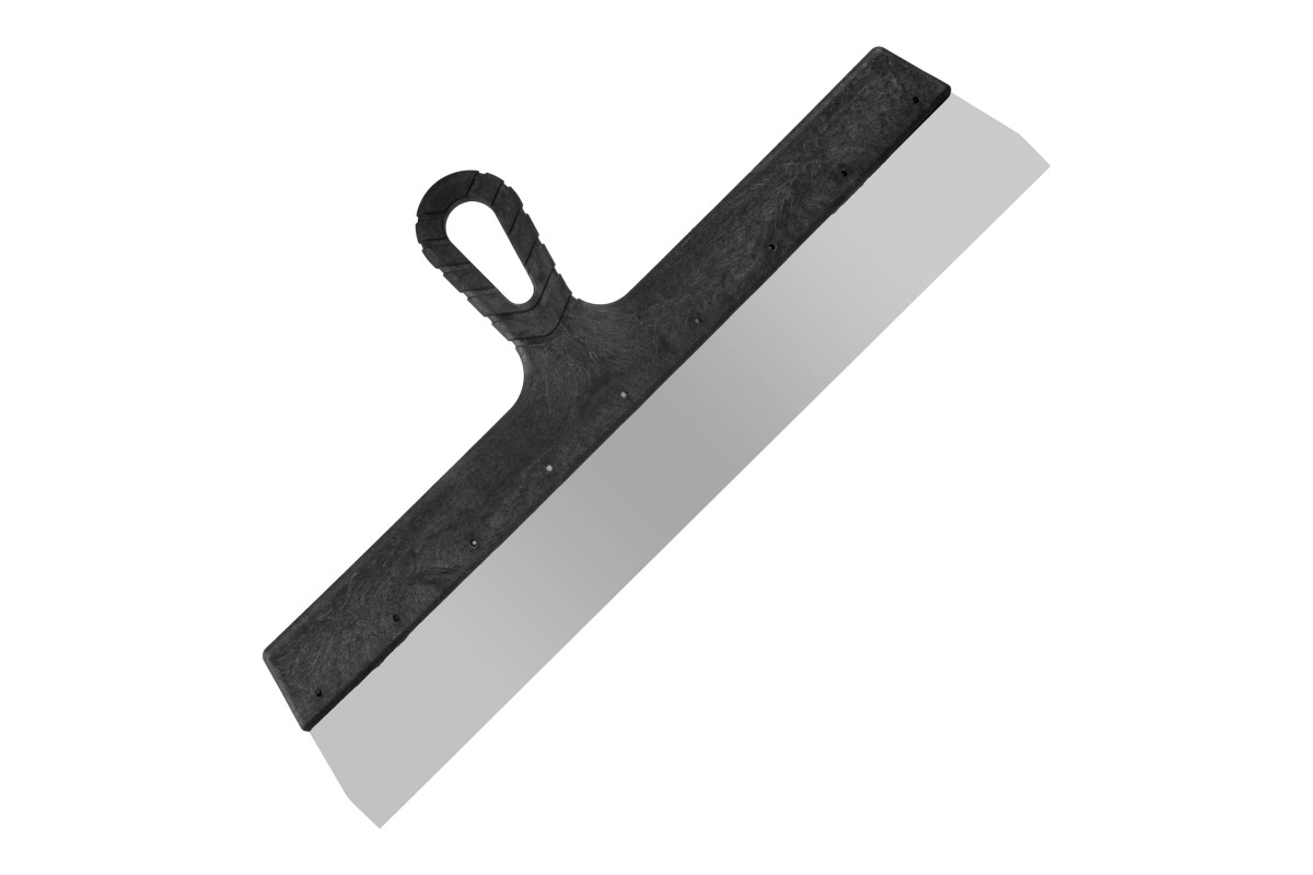 Фасадный шпатель из нержавеющей стали с пластиковой рукояткой предназначен для нанесения и разравнивания толстого шпаклевочного слоя и штукатурных смесей на большие поверхности. Ширина шпателя составляет 450 мм, что позволяет комфортно разравнивать раствор на большой по площади поверхности, чтобы получить ровное основание для последующей отделки.