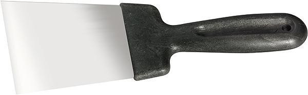 Полотно шпателя изготовлено из нержавеющей стали 30Х13 (12Х17). Облегченная ручка из ударопрочной пластмассы. Ручка шпателя имеет специальную (изогнутую) форму, что обеспечивает максимально удобную работу. Шпатель предназначен для нанесения, выравнивания и сглаживания шпаклевочного слоя на больших и малых поверхностях.