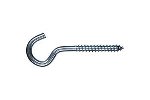 Шуруп крючок или его второе название шуруп полукольцо выполнен из проволоки на один конец которой нанесена универсальная резьба, а другой конец изогнут в виде полукольца. Сечение проволоки разнообразно и начинается от 2.5-3мм и заканчивая 10-12мм. Шурупы очень хорошо сконструированы для крепления в дереве.Область применения шурупа с крючком: служит в основном для крепления подвесных конструкций, которые необходимо снимать и вешать в процессе эксплуатации. Так же очень широко шуруп крючок применяется в быту, например для крепления бельевых веревок и прочее. С помощью него можно крепить стальной трос при растяжке.