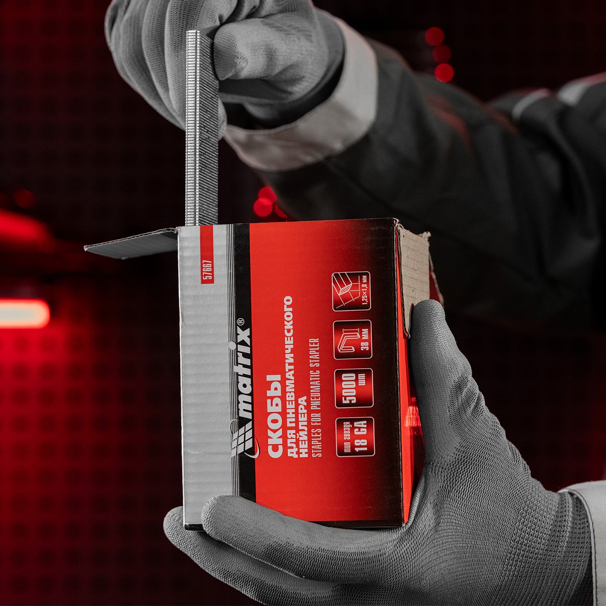 Скобы для пневматического степлера 18GA, 1.25 х 1 мм, длина 38 мм ширина 5,7 мм, 5000 шт Matrix