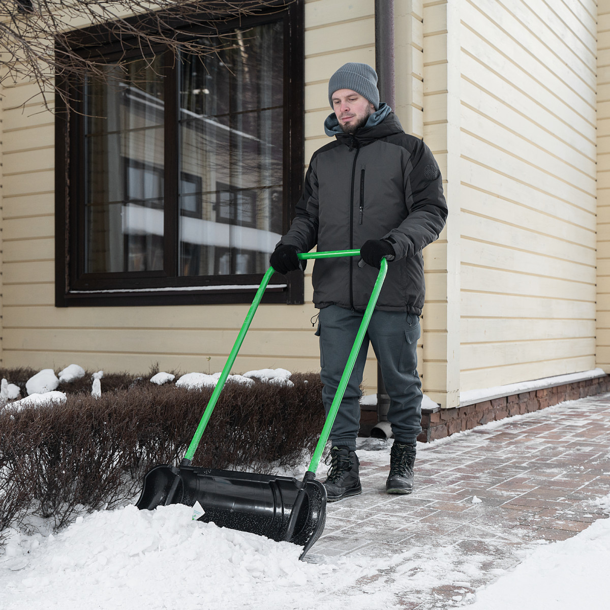 - Надежность — ковш выполнен из прочного полипропилена, устойчивого к воздействию низких температур.