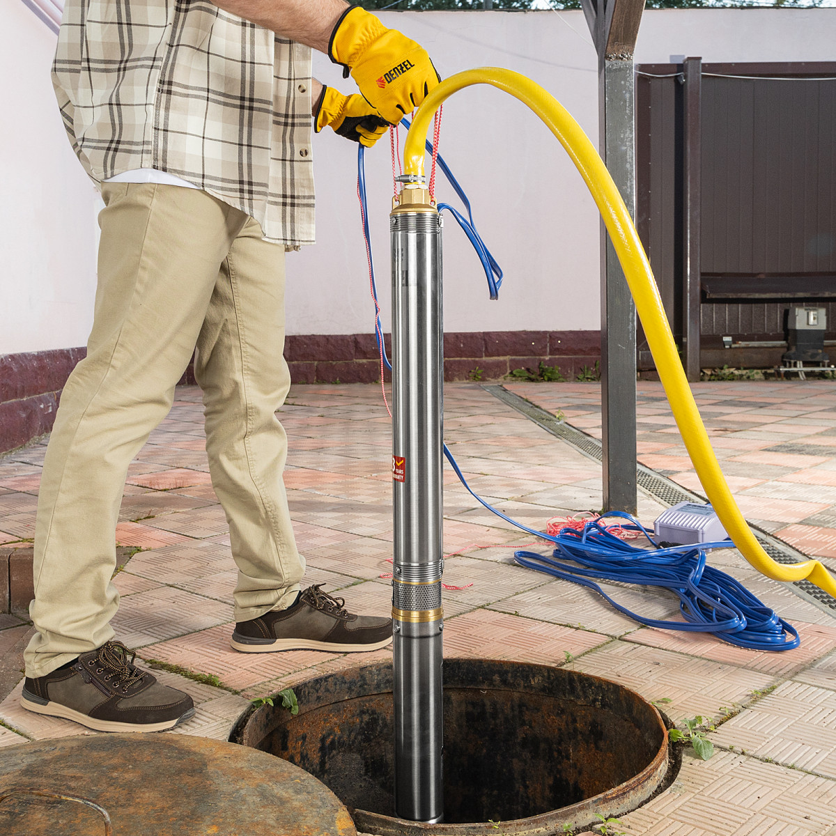Скважинный насос DWC-3-60, центробежный, диаметр 3", 800 Вт, 3300 л/ч, напор 60 м Denzel