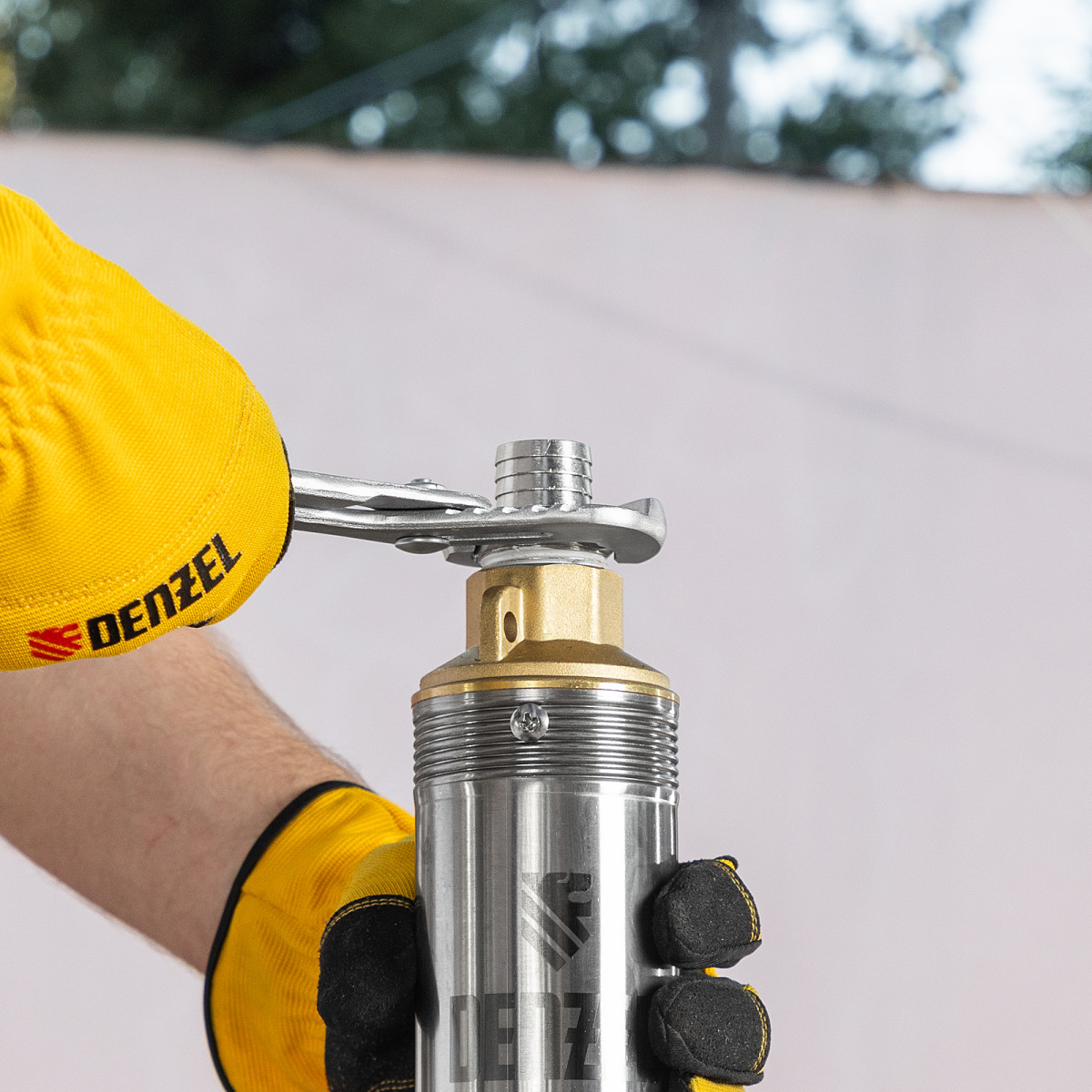 Насос скважинный центробежный Denzel DWC-3-60 97255 диаметром 3" и мощностью 800 Вт легко справляется с перекачиванием чистой воды объемом до 3300 л/ч с глубины до 80 м, поднимая ее на высоту до 60 м. С его помощью можно организовать водоснабжение частного дома, полив или орошение грунта, а также решить другие бытовые задачи.