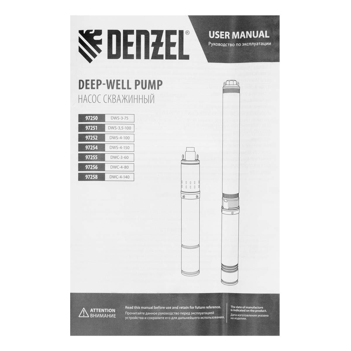 Скважинный насос DWS-4-100, винтовой, диаметр 4", 800 Вт, 1700 л/ч, напор 100 м Denzel