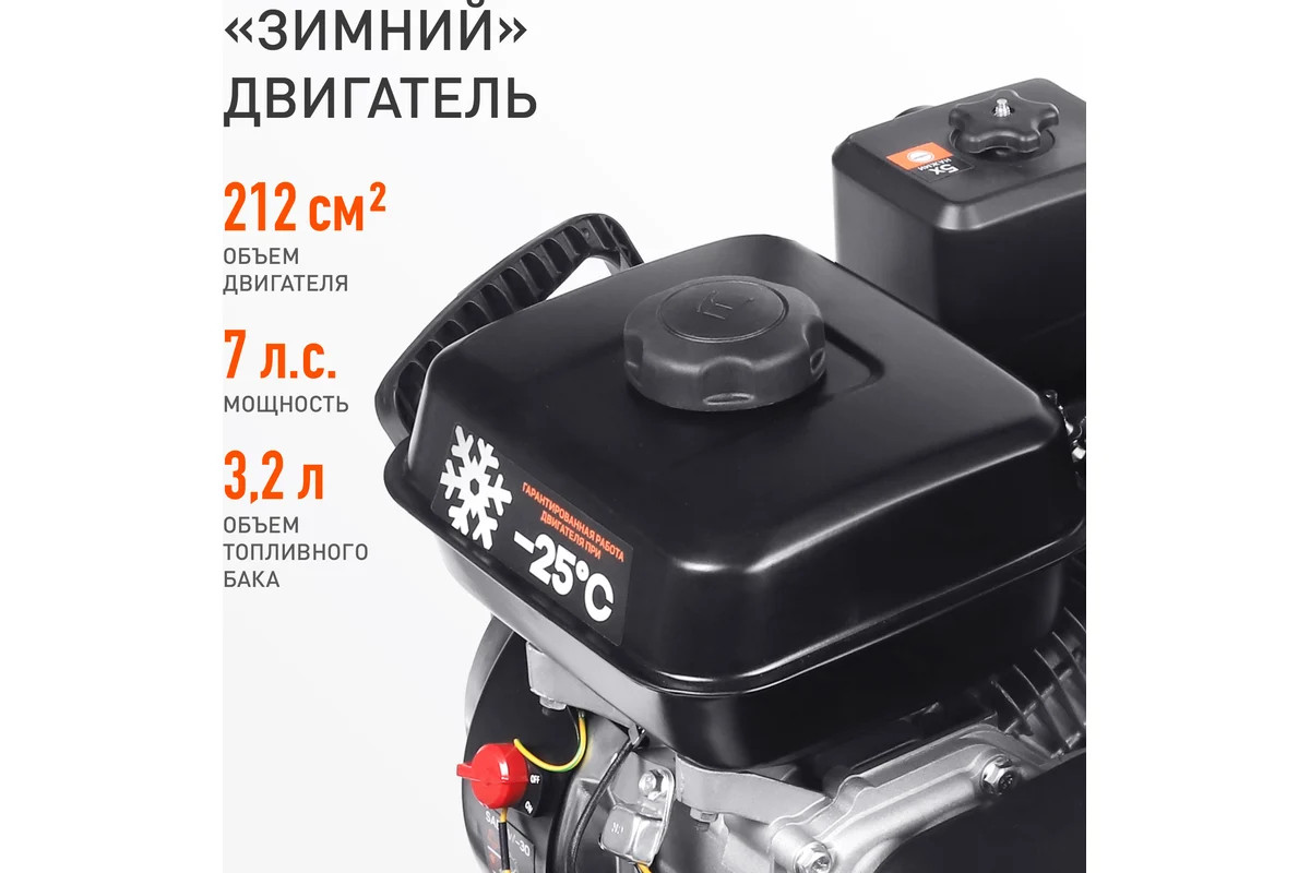 • Шестерня редуктора шнека выполнена из бронзы, что в десятки раз увеличивает ресурс снегоуборщика.