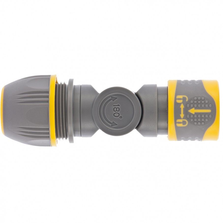 • Шарнирный механизм — коннектор можно повернуть на 180°, избежав перекручивания и перегибания шланга.