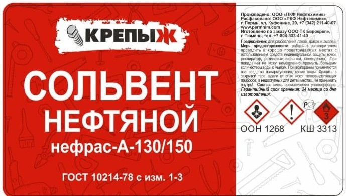 Предназначен для разбавления масляных красок, алкидных эмалей и лаков.