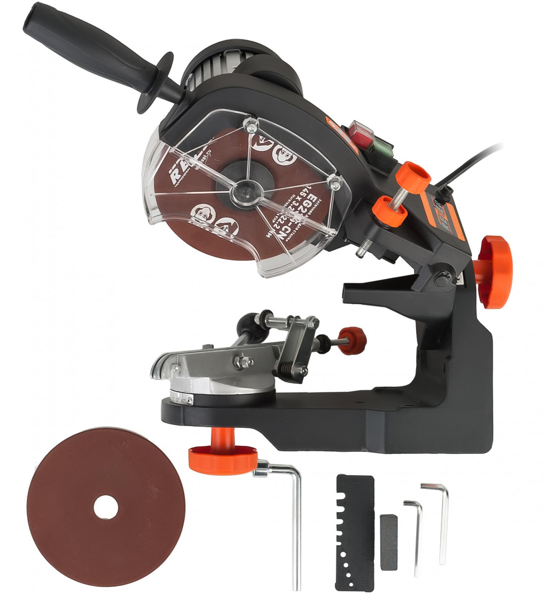 Заточной станок Rezer EG 235-CN - стационарный инструмент, который предназначен для заточки пильных цепей любых моделей в специализированных мастерских. Все управление станком заключено в двух клавишах, включающей и выключающей инструмент. Точило этой модели оснащено подсветкой для удобства работы. Механизм зажима направляющих выполнен из металла с кулачком-эксцентриком. Станок не требует сложного сервисного обслуживания и хранения.