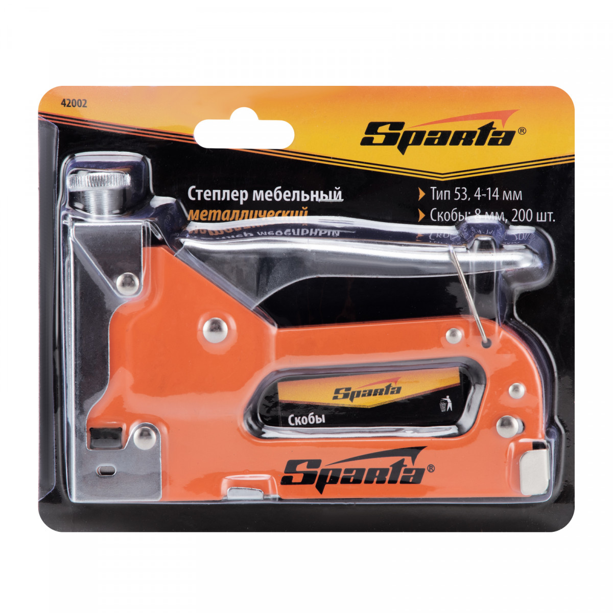Степлер мебельный регулируемый, со скобами 200 шт, тип скобы 53, 4-14 мм Sparta