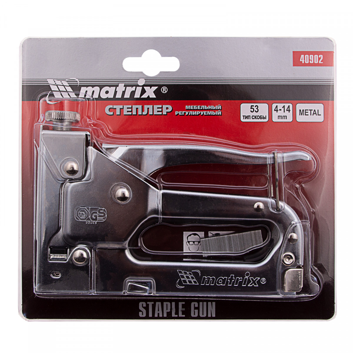 Степлер мебельный регулируемый, тип скобы 53, 4-14 мм Matrix