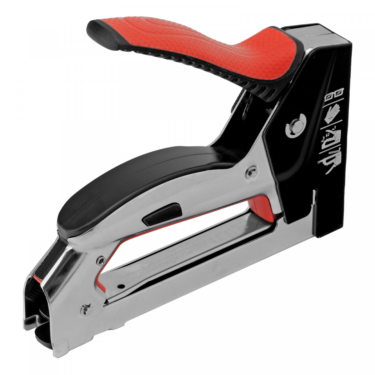 - Продуманная комплектация — степлер поставляется с крючком для подвешивания на ремень.