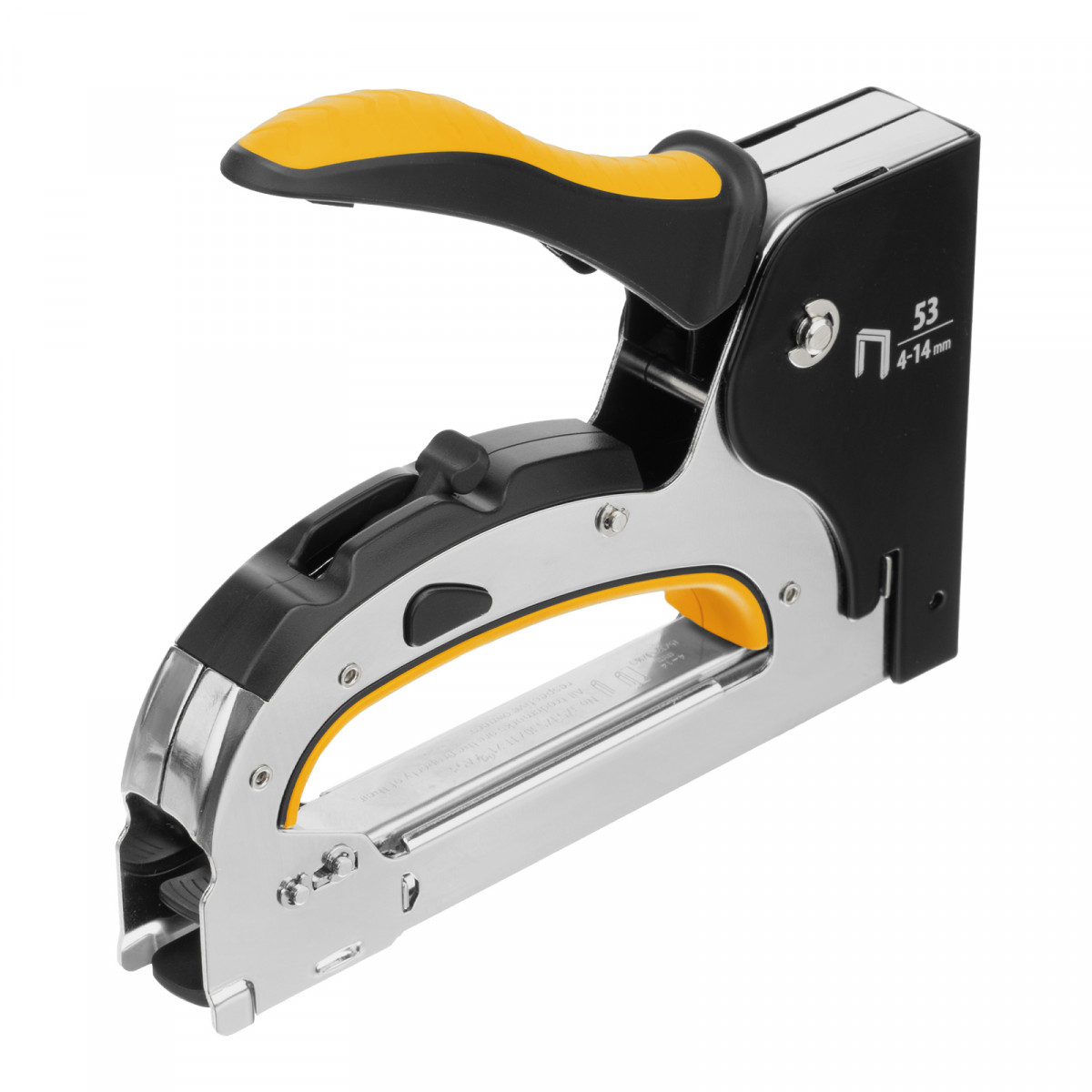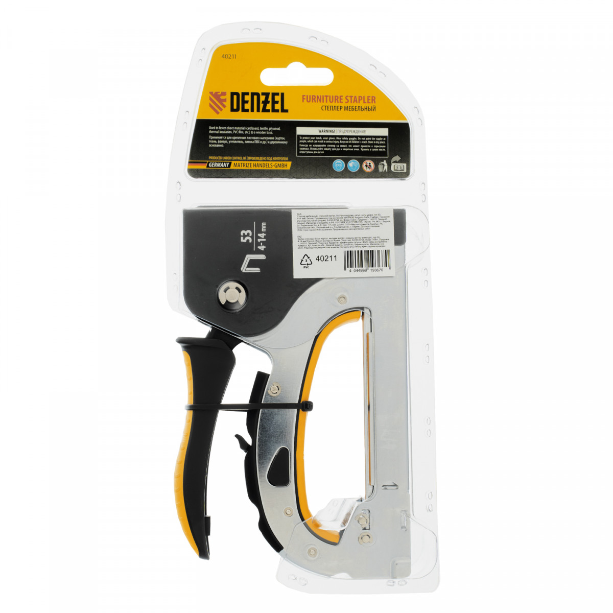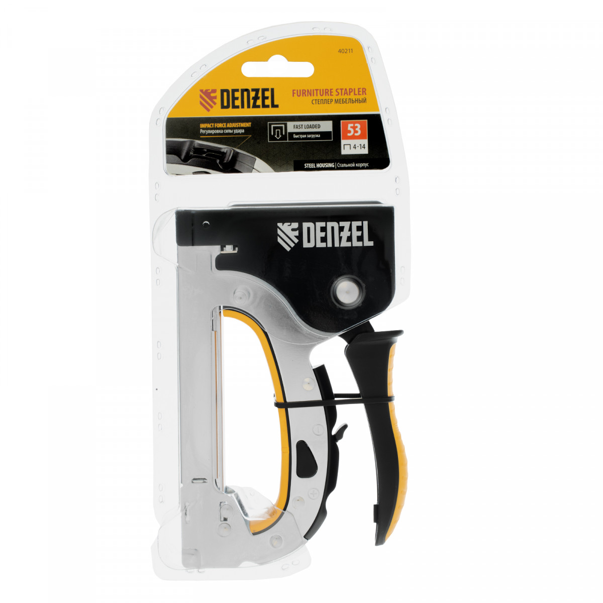 Степлер мебельный, стальной корпус, быстрая загрузка, регул. силы удара, тип 53, 4-14 мм Denzel