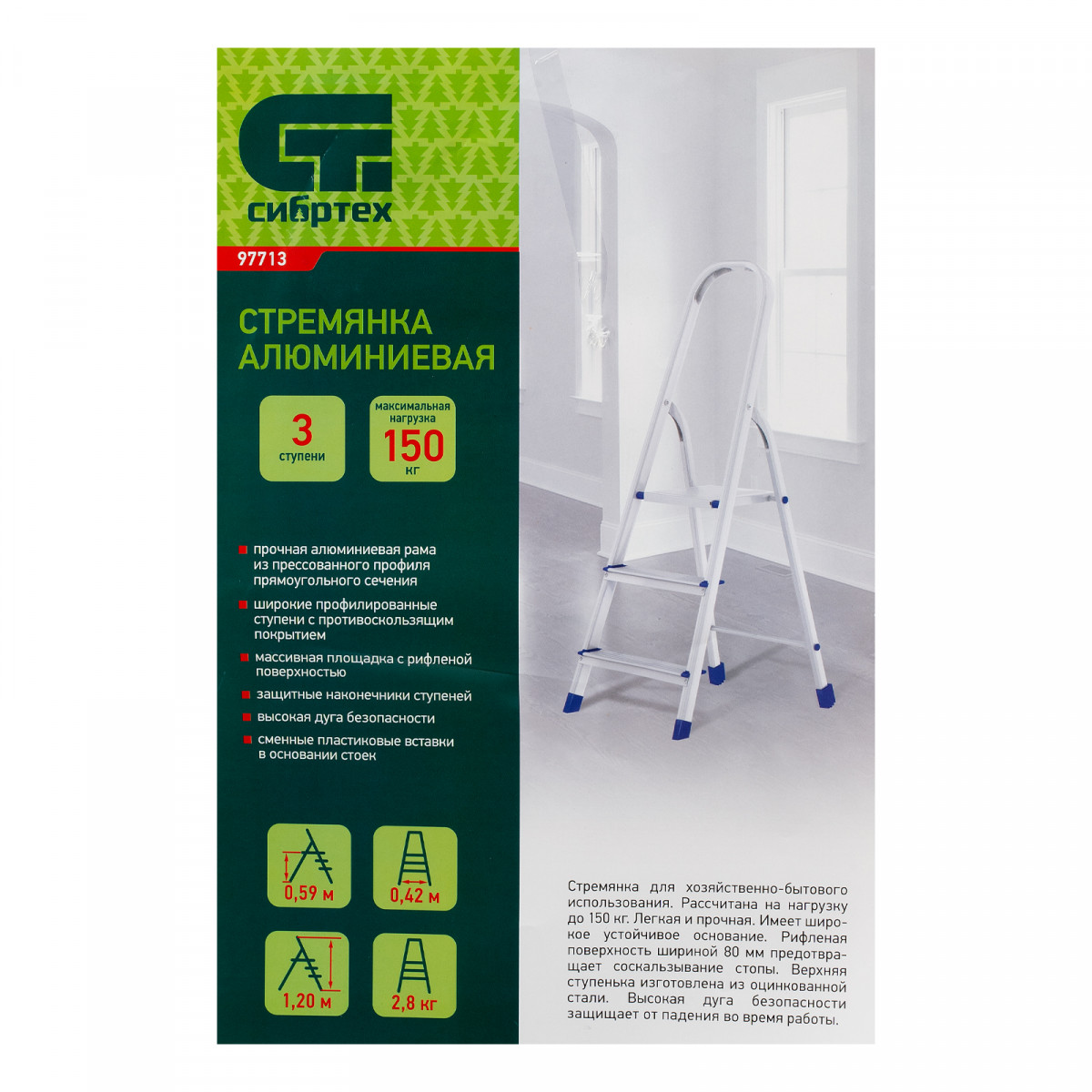 Стремянка, 3 ступени, алюминиевая, Сибртех