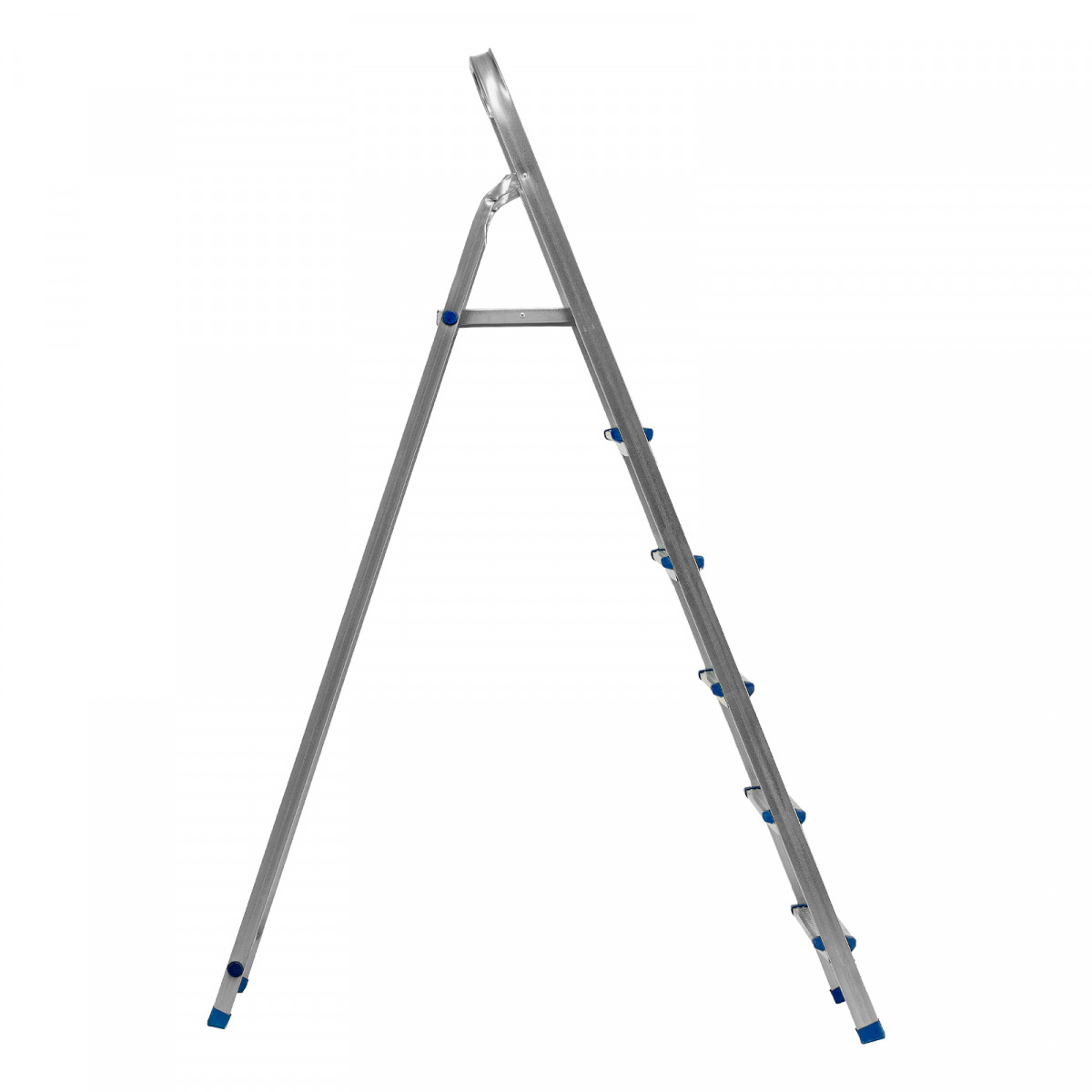Стальная оцинкованная стремянка Сибртех 97838 с 6 ступенями позволяет повесить полку, картину или шкафчик, достать нужный предмет и решить другие задачи, для которых требуется доступ к предметам на высоте. Рама и ступени из стального профиля выдерживают вес до 120 кг. Расстояние от опорной поверхности до площадки составляет 121 см, при среднем росте пользователя 170 см рабочая высота лестницы — 321 см. Необходимо соблюдать технику безопасности: размещать стремянку только на ровной плоскости и не использовать ее для работы с дрелью, шуруповертом и другим электроинструментом.