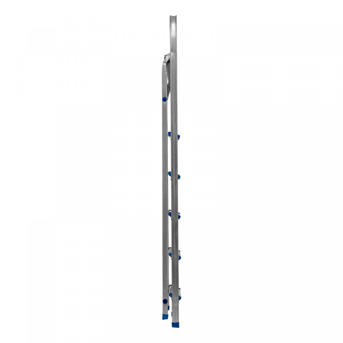 - Простая установка — на верхней площадке предусмотрены специальные зацепы для фиксации стремянки в разложенном состоянии.