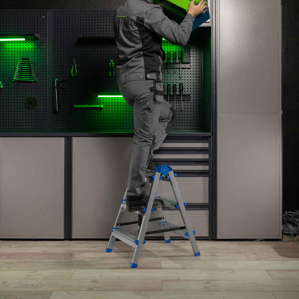 - Безопасность пользователя — на рифленых широких ступенях ступни не скользят, на углах имеются пластиковые наконечники для защиты от травм.