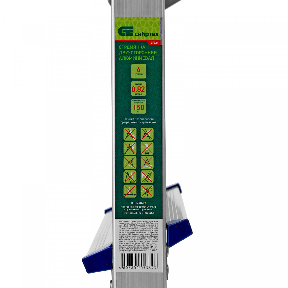 Стремянка двусторонняя 4 ступени, алюминиевая, Сибртех