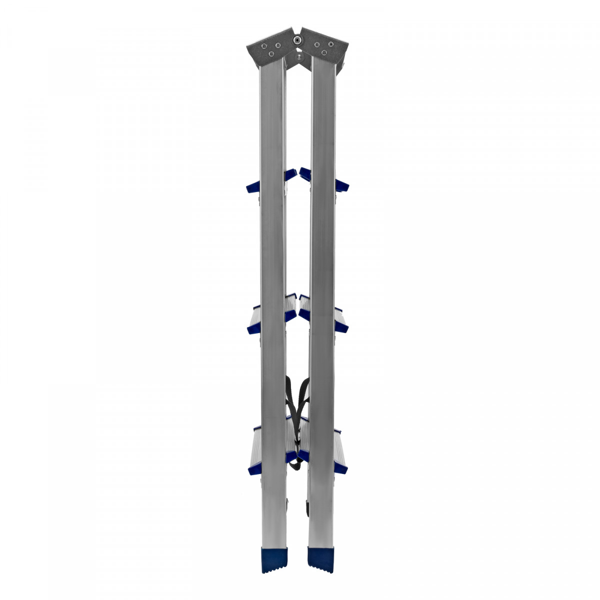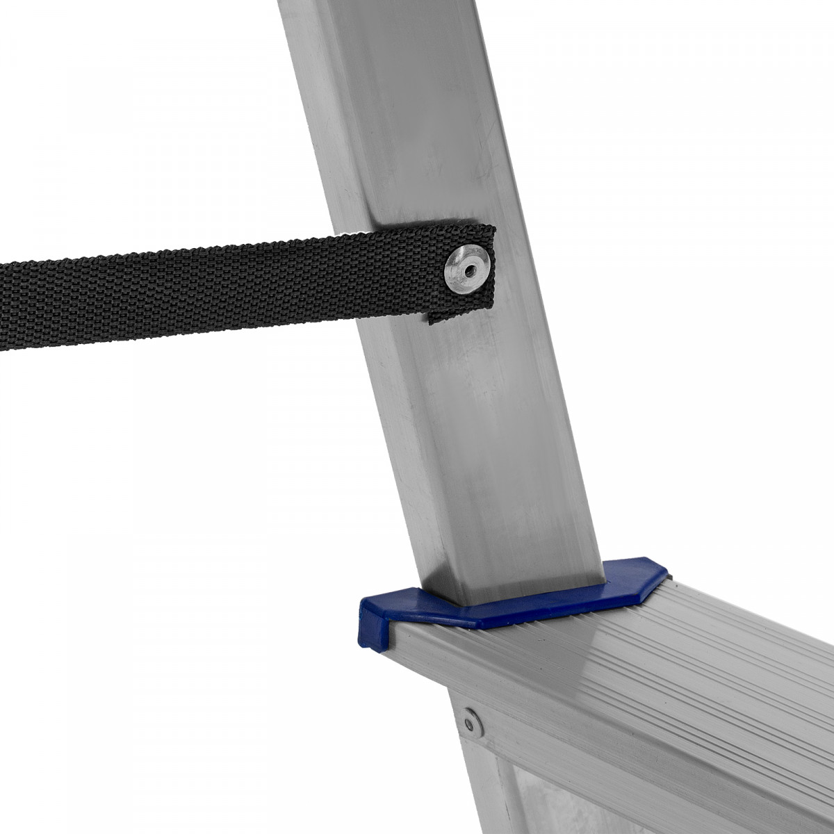 • Продуманная конструкция — нейлоновые страховочные стяжки повышают надежность фиксации стремянки в рабочем положении.