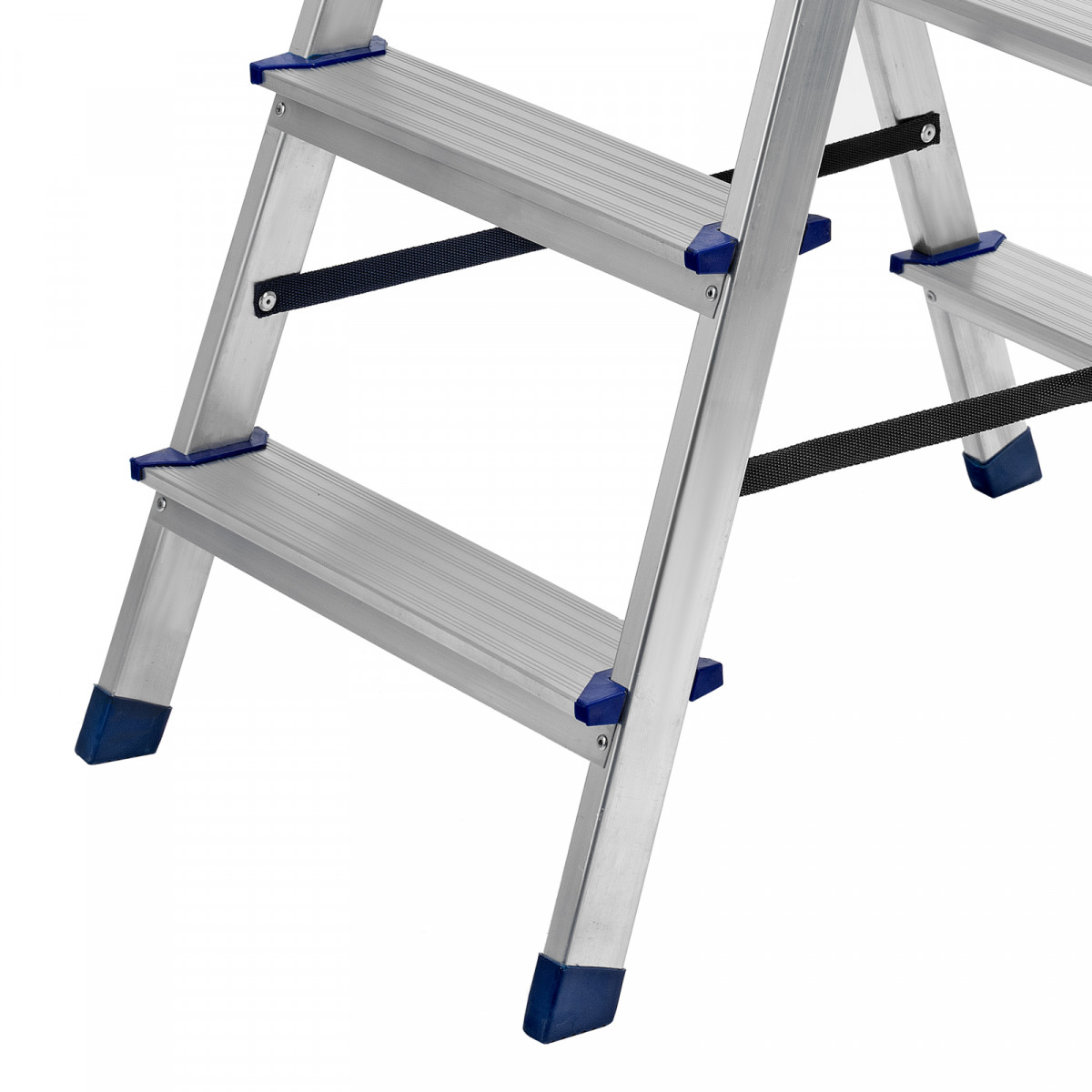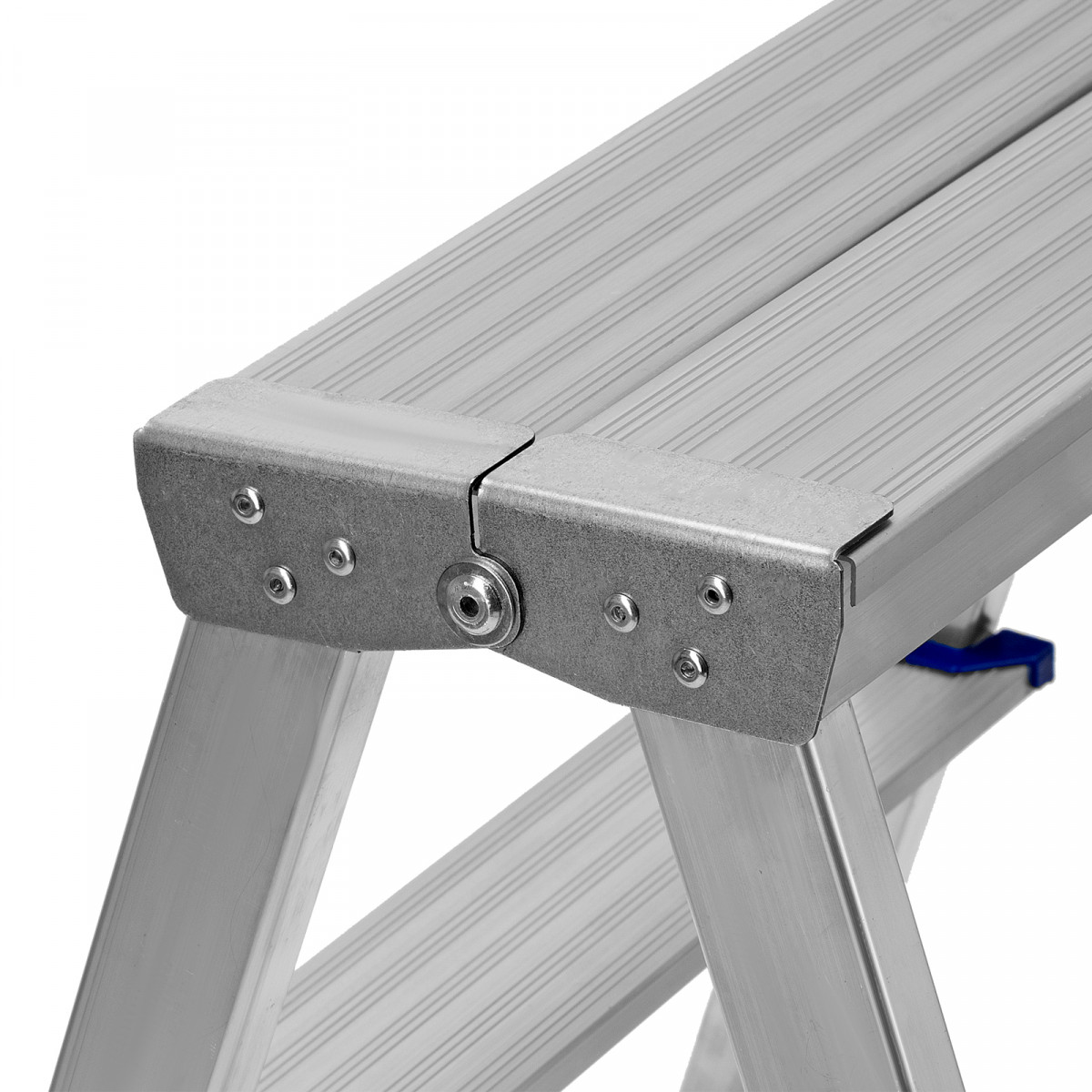 • Долговечность — стремянка выполнена из легкого, но прочного алюминия, устойчивого к коррозии.
