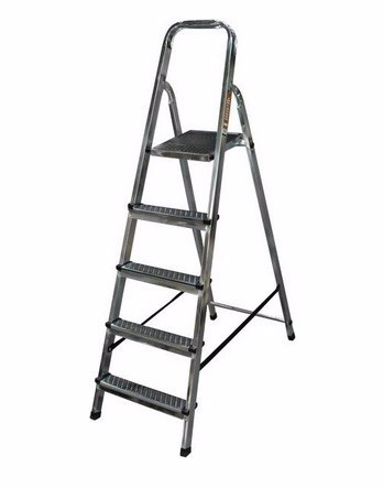 Широкие рифленые ступеньки обеспечивают безопасное и удобное расположение ног при работе на стремянке.