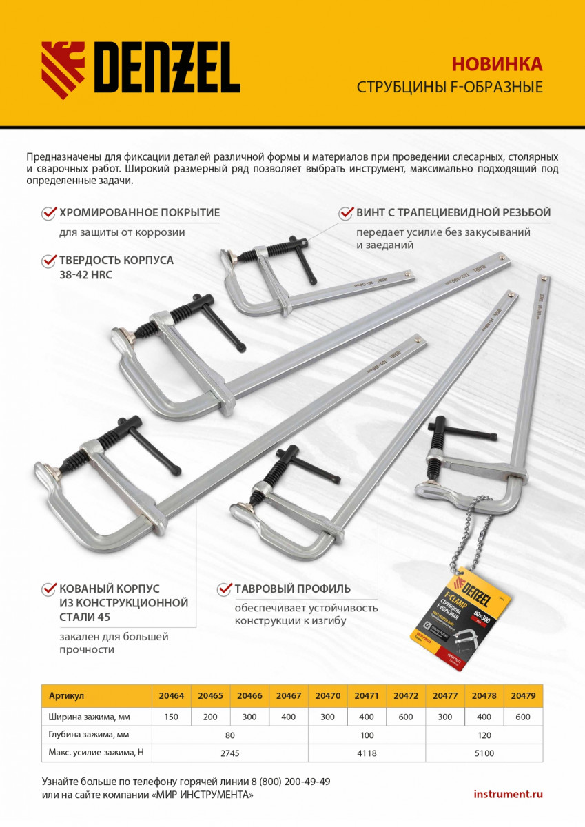 - Хромированное покрытие надежно защищает струбцину от коррозии.