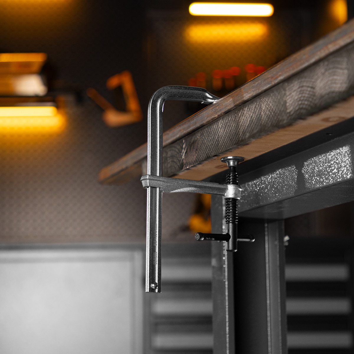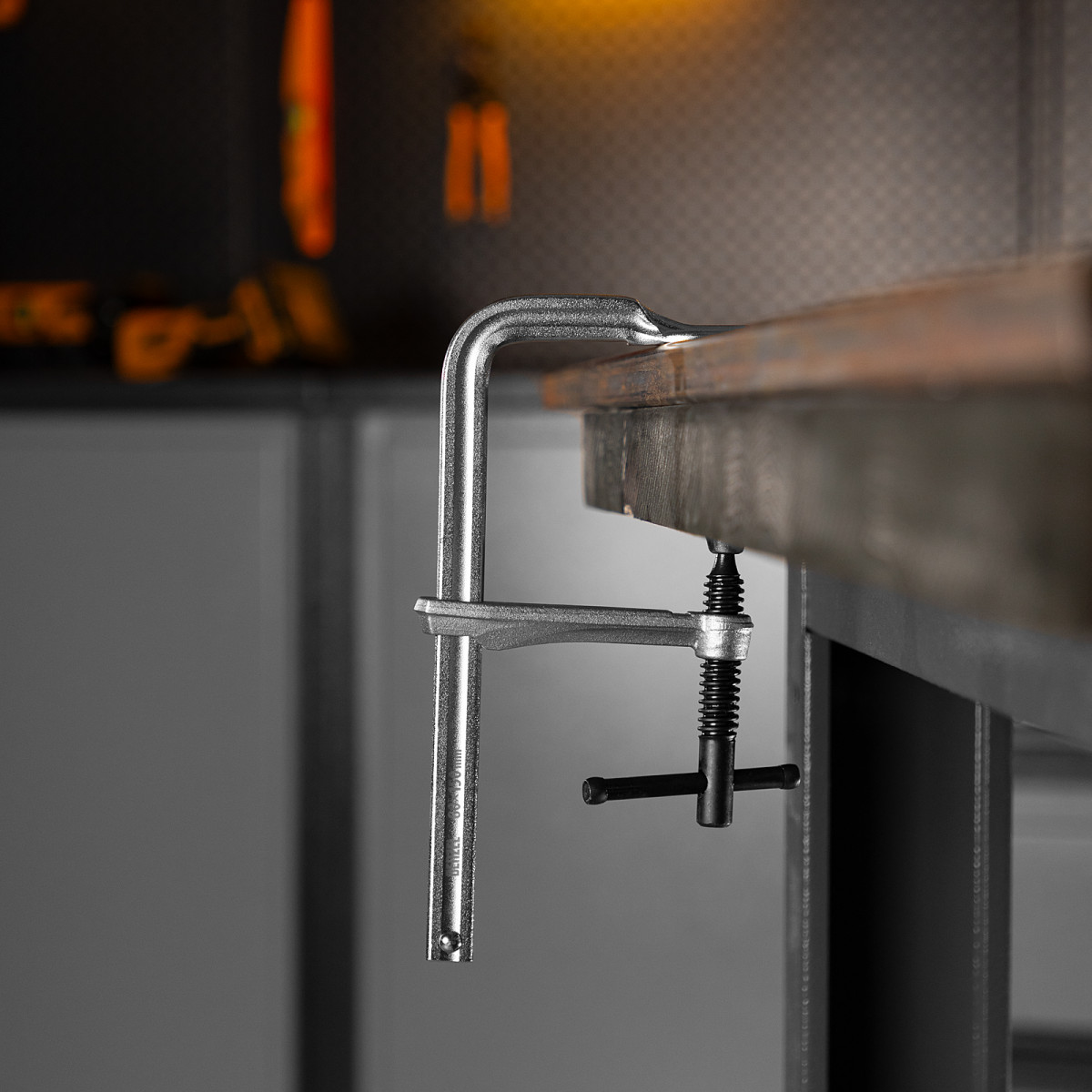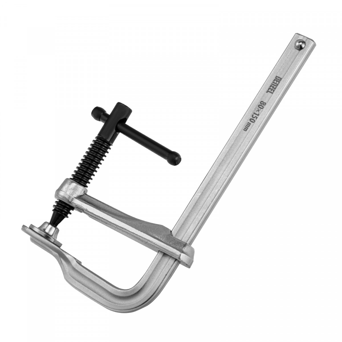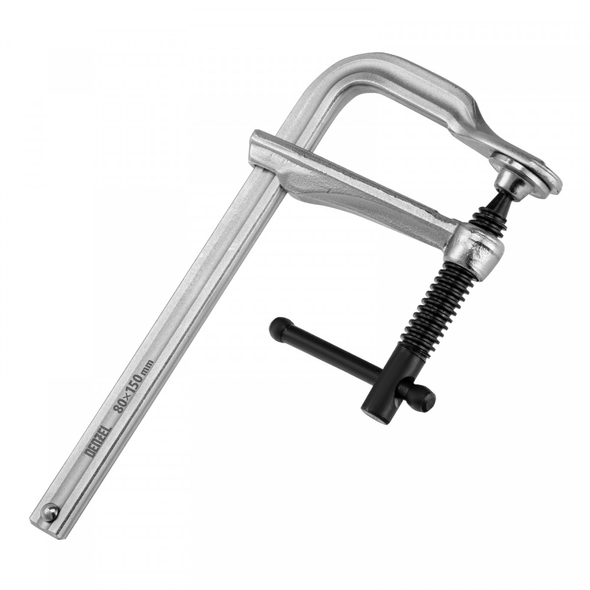 Кованая струбцина Denzel обладает высокой прочностью за счет корпуса из закаленной конструкционной стали.