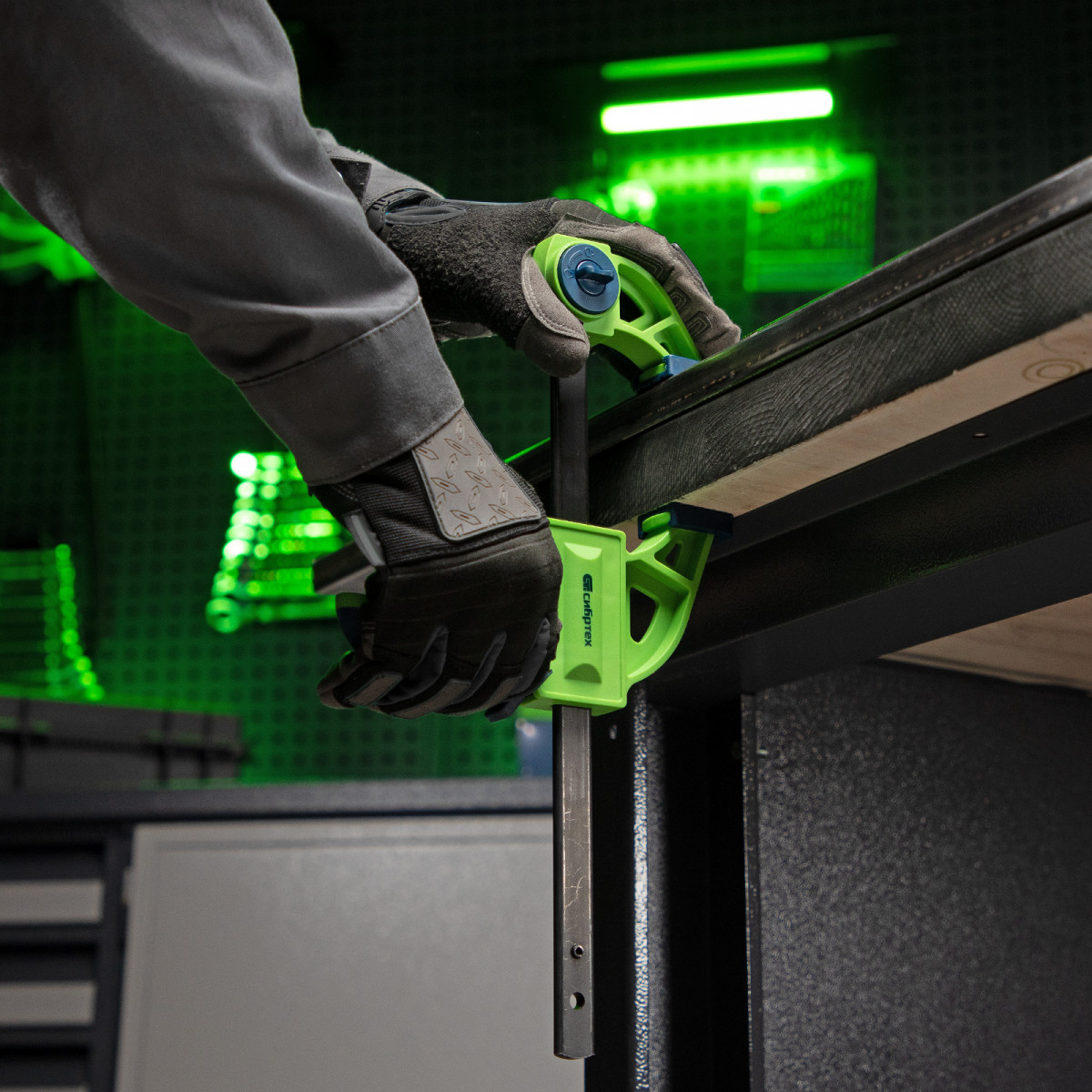 Струбцина F-образная, быстрозажимная, 150 х 70 х 360 мм, пластиковый корпус, фиксатор, двухкомпонентная рукоятка Сибртех