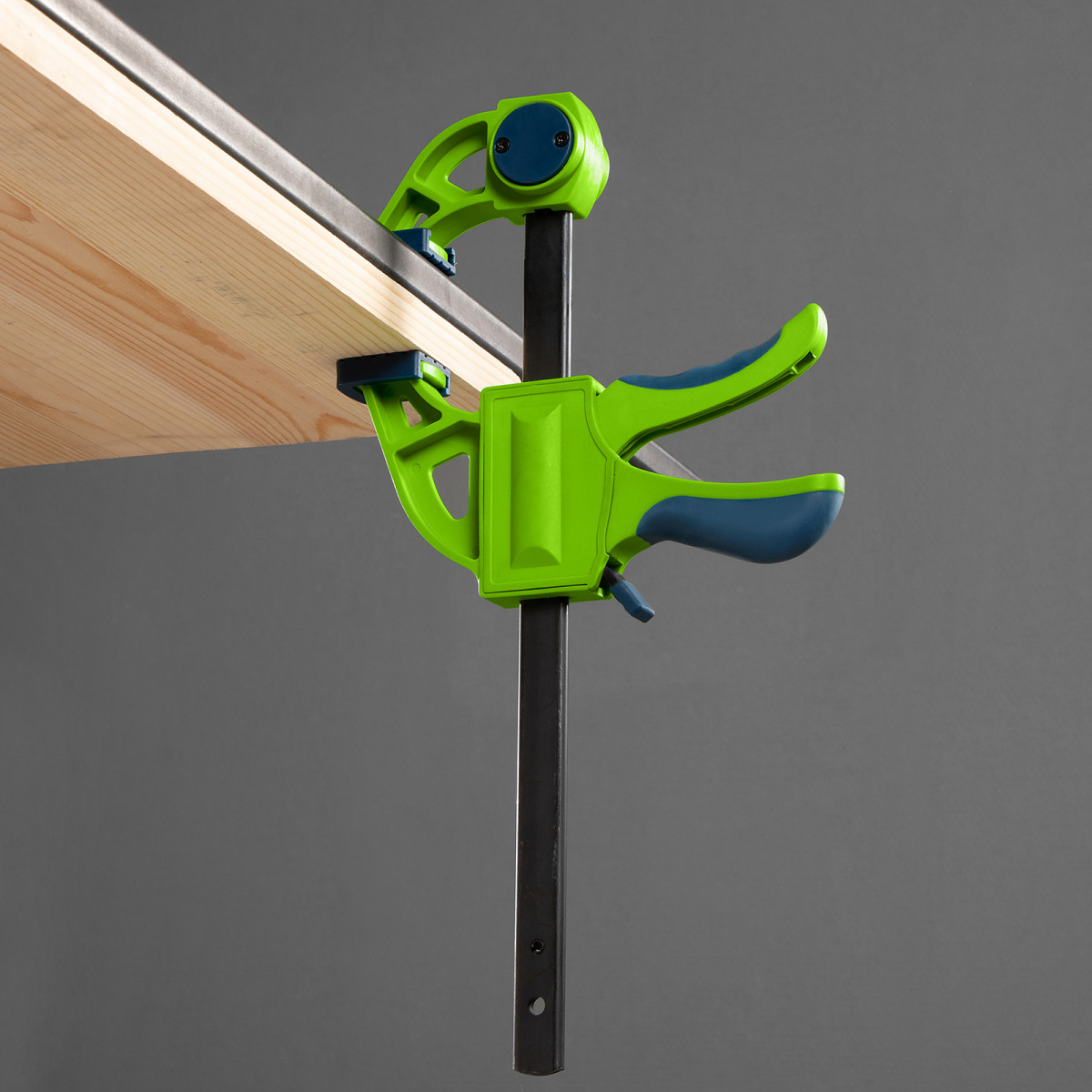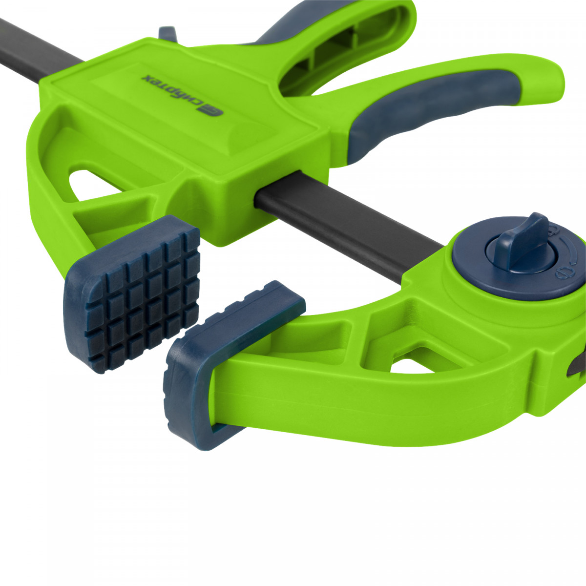 F-образная быстрозажимная струбцина Сибртех 20563 длиной 360 мм, с шириной и глубиной зажима 150 и 70 мм соответственно, в пластиковом корпусе, с фиксатором и двухкомпонентной рукояткой, позволяет зажимать заготовки для их дальнейшей обработки или сборки. Помогает решать множество задач благодаря оптимальной глубине зажима. Пластинчатый механизм пошагово перемещает подвижную губку вдоль направляющей до достижения максимально плотного захвата детали. Фиксатор препятствует движению губки в обратную сторону. Струбцина пригодится в столярной мастерской, а также будет полезна в быту.