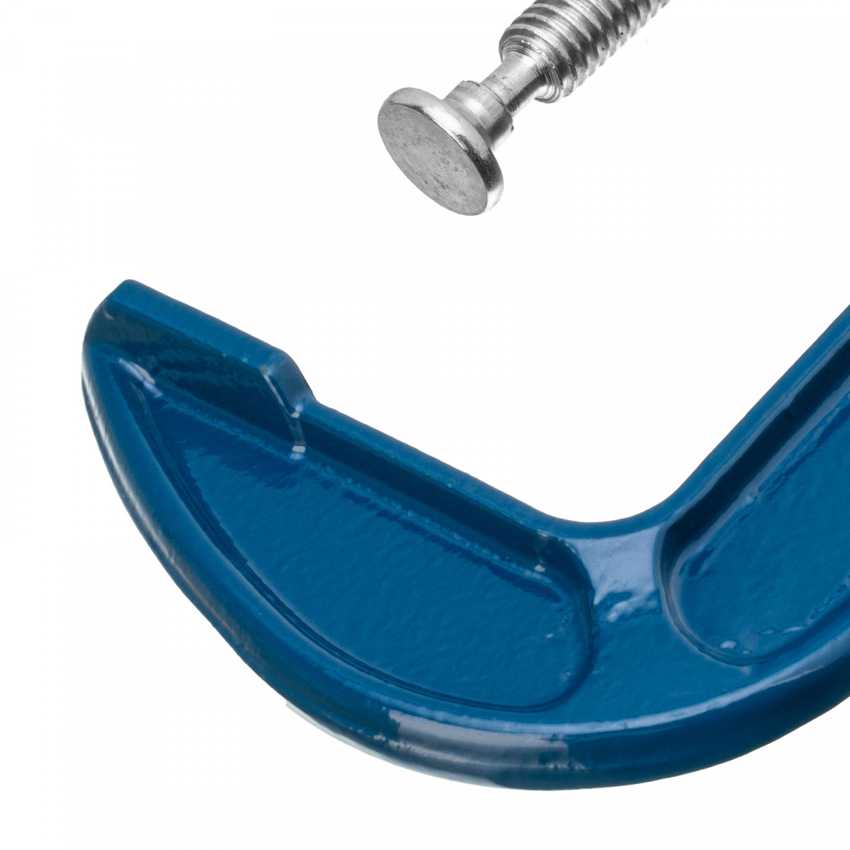 - Надежная фиксация деталей — струбцина имеет подвижный зажим, установленный на шаровой шарнир.