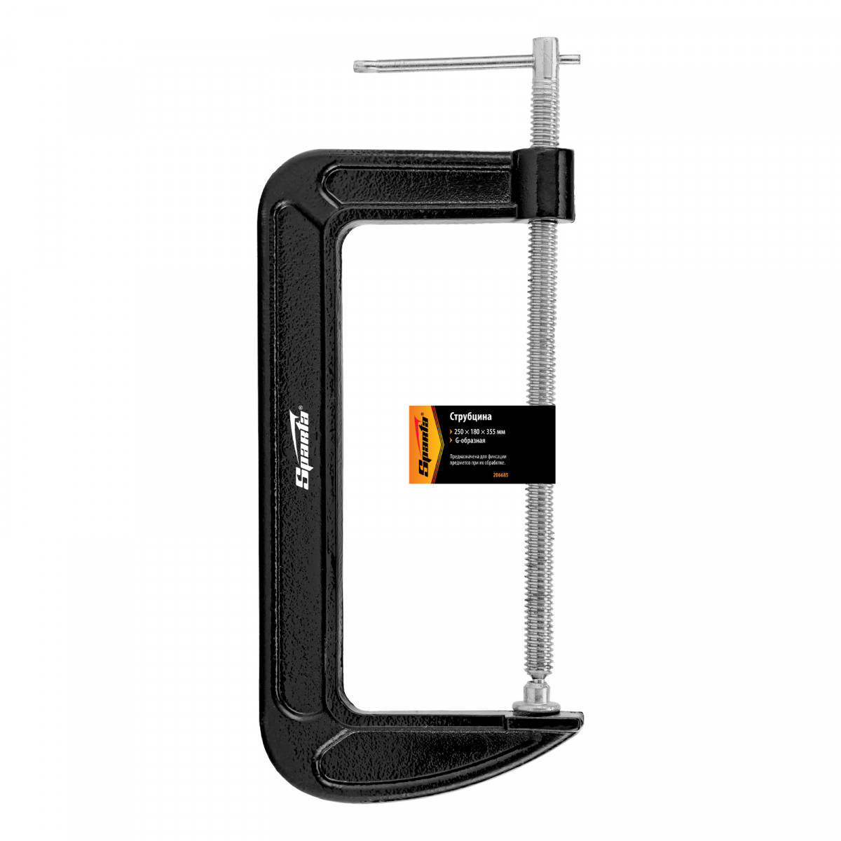 G-образная струбцина Sparta 206685 с шириной зажима 250 мм надежно фиксирует различные детали для дальнейшего склеивания, сверления, пиления, шлифования или сварки. Винт с воротком и крупной червячной резьбой позволяет зажимать детали плавно и со значительным усилием. Струбцина будет полезна домашнему мастеру.