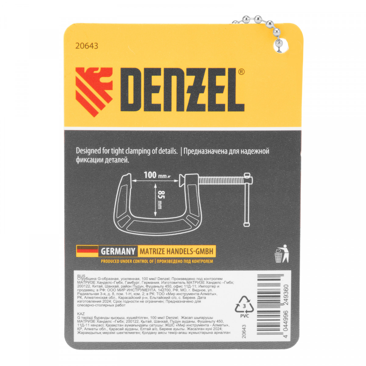 Струбцина G-образная, усиленная, 100 мм Denzel
