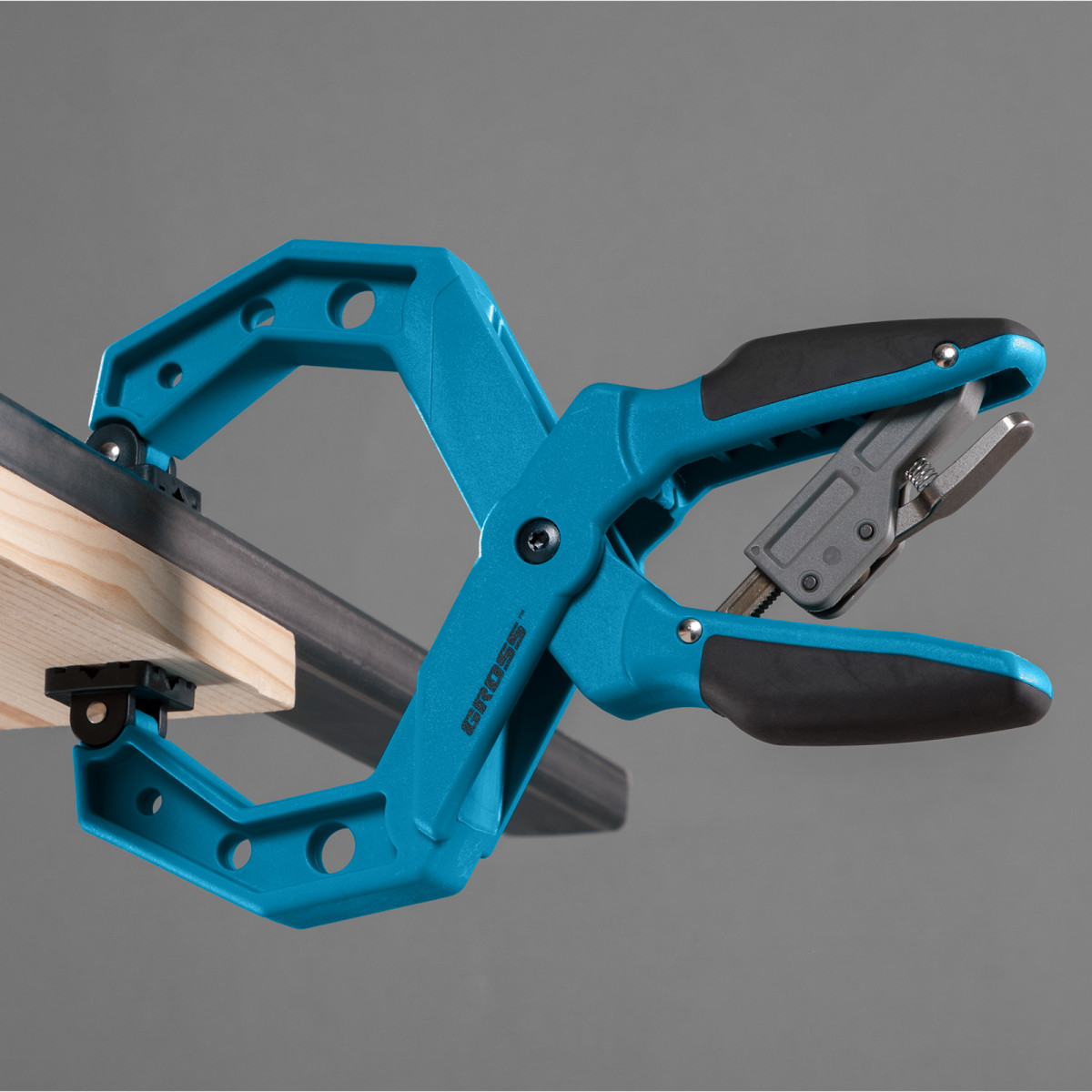 Струбцина клещеобразная 4, пластиковый корпус, храповой механизм жесткой фиксации, 100 мм Gross