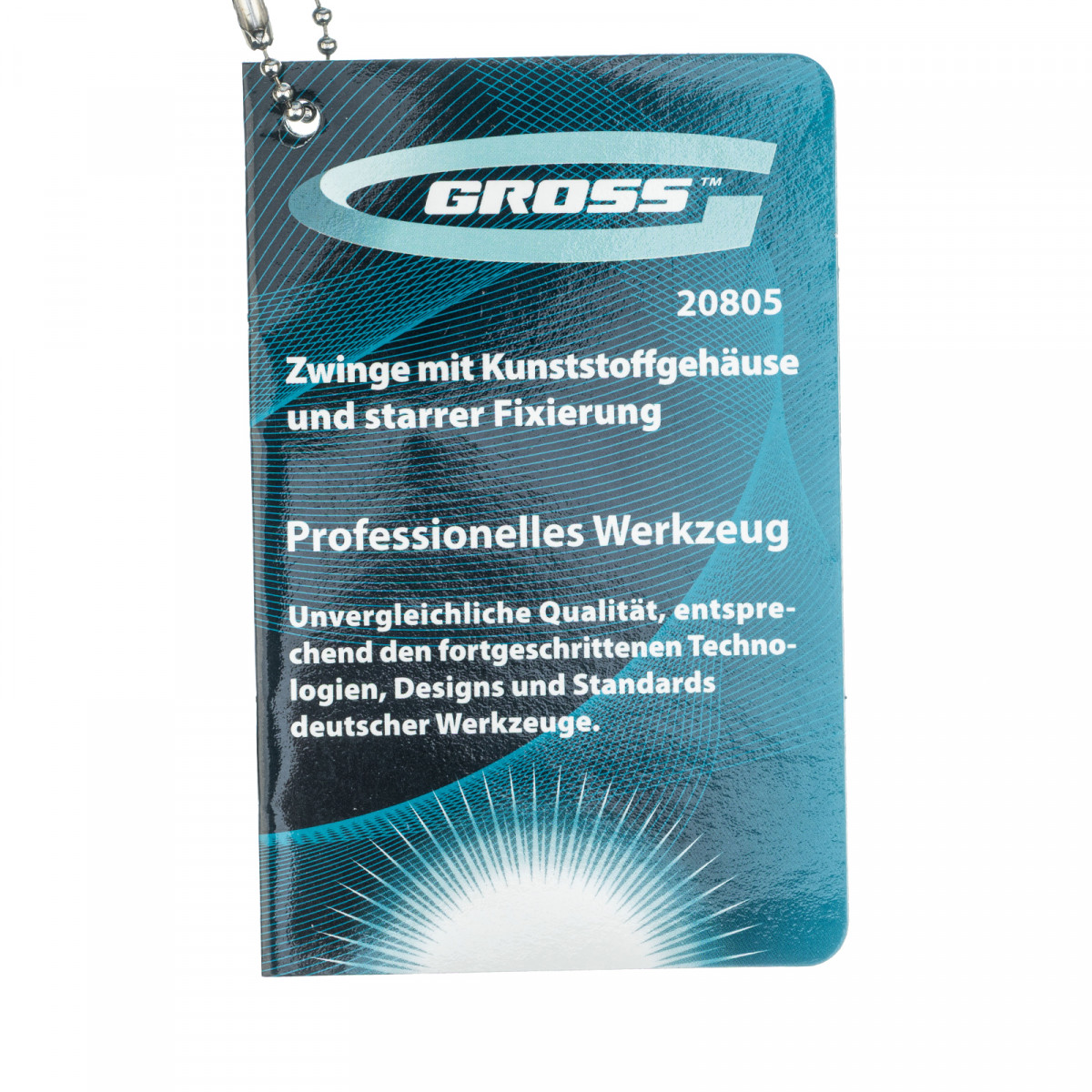 Клещеобразная струбцина Gross 20805 в пластиковом корпусе, с храповым механизмом жесткой фиксации, используется для фиксирования деталей толщиной 14 дюйма / 100 мм при их скреплении и обработке. Позволяет зажимать и удерживать заготовки из древесины и других материалов. Благодаря надежному металлическому храповому механизму губки жестко фиксируют предметы, что отличает данную модель от струбцин прищепочного типа на пружинах. Инструмент предназначен для профессионального использования.