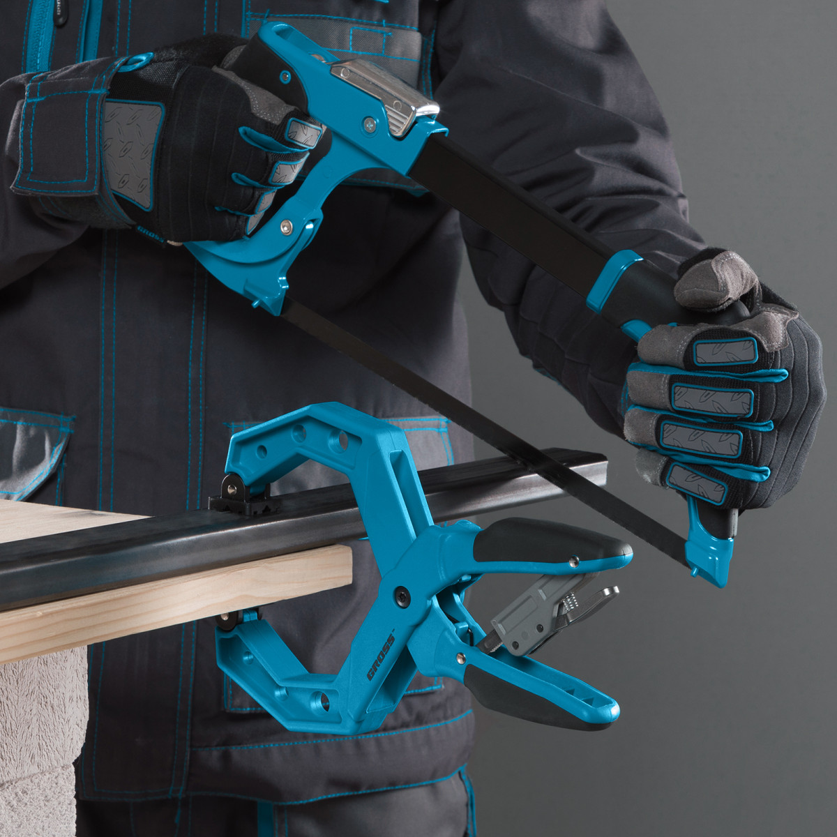 • Курковый фиксатор обеспечивает моментальное раскрытие струбцины, что облегчает работу с ней.