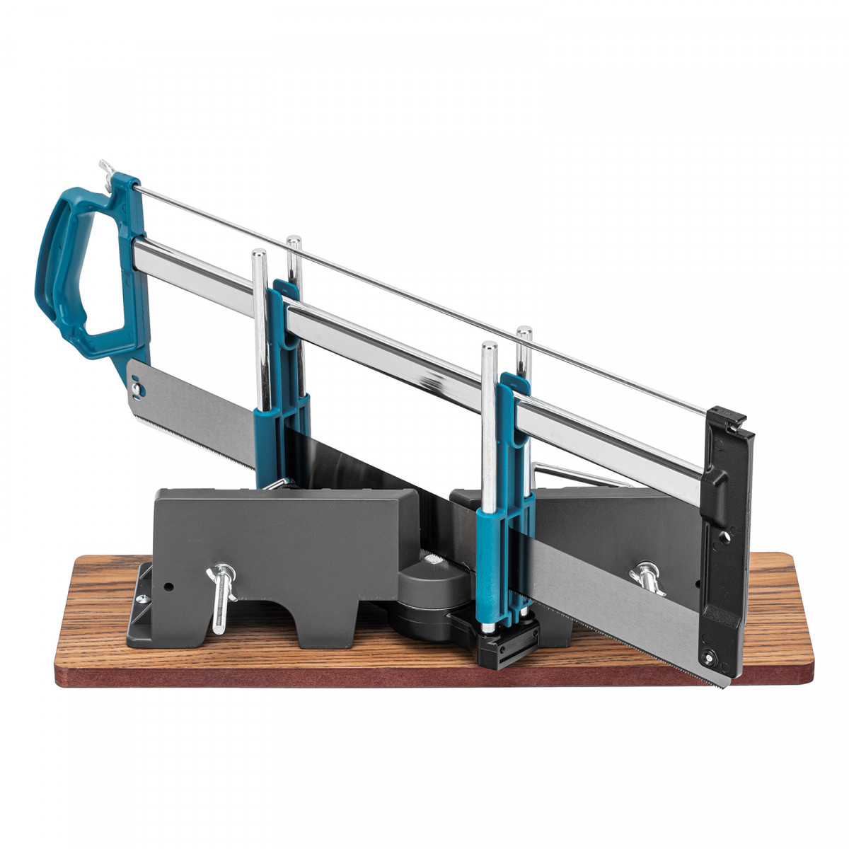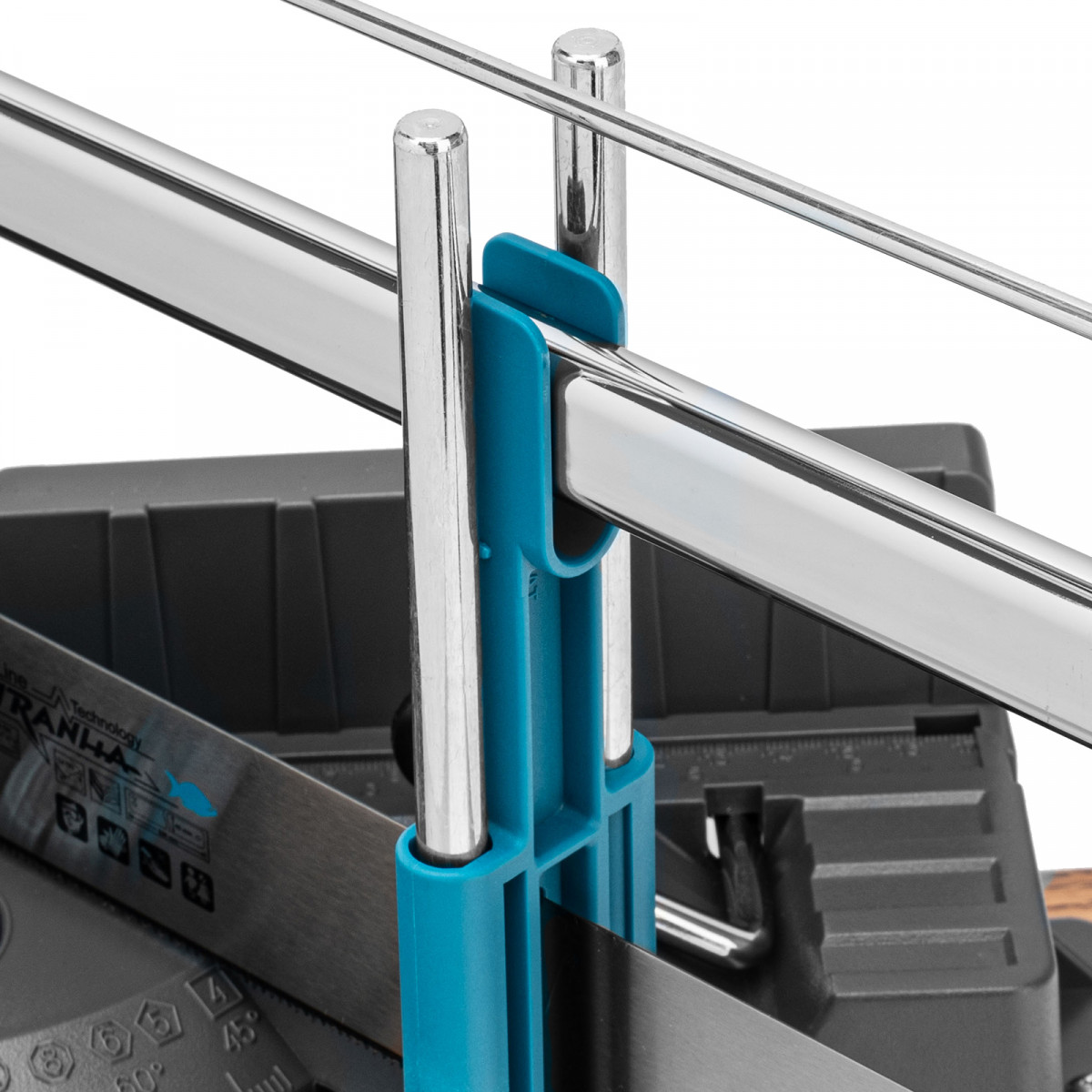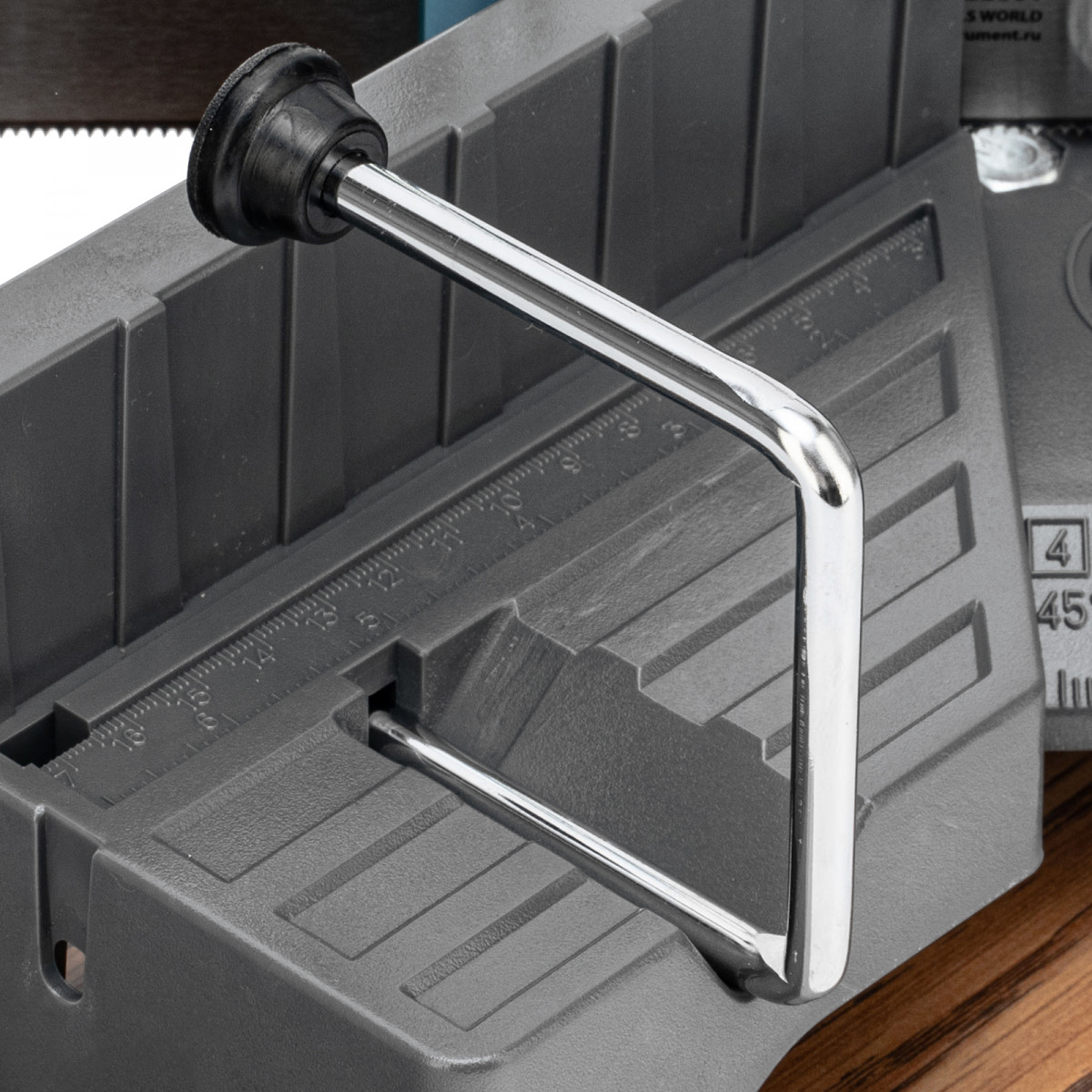 • Функциональность — прижимные струбцины надежно фиксируют заготовку, измерительные шкалы облегчают определение ее рабочей длины и угла распила.