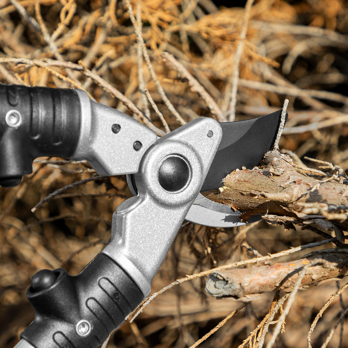 Кованый сучкорез прямого реза Palisad LUXE Forged 605675 длиной 610 мм, с алюминиевыми обрезиненными рукоятками, используется для срезания живых веток толщиной до 35 мм. Инструмент с длинными ручками позволяет увеличить усилие сжатия за счет работы двумя руками. Режущее лезвие из высококачественной японской стали прошло индукционную закалку и отличается высокой прочностью. Тефлоновое покрытие защищает его от ржавчины, а также уменьшает силу трения, что облегчает рез. Сучкорез пригодится для ухода за садом и огородом.