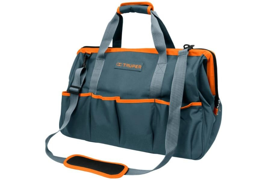 Сумка TRUPER предназначена для хранения и транспортировки различных инструментов. Изготовлена из высокопрочного материала, содержит достаточное количество отделений и карманов. Сумка имеет закрывающееся главное отделение, что позволит снизить риск утери составляющих. Для более удобной переноски предусмотрен плечевой ремень с защитной накладкой.Преимущества сумки: