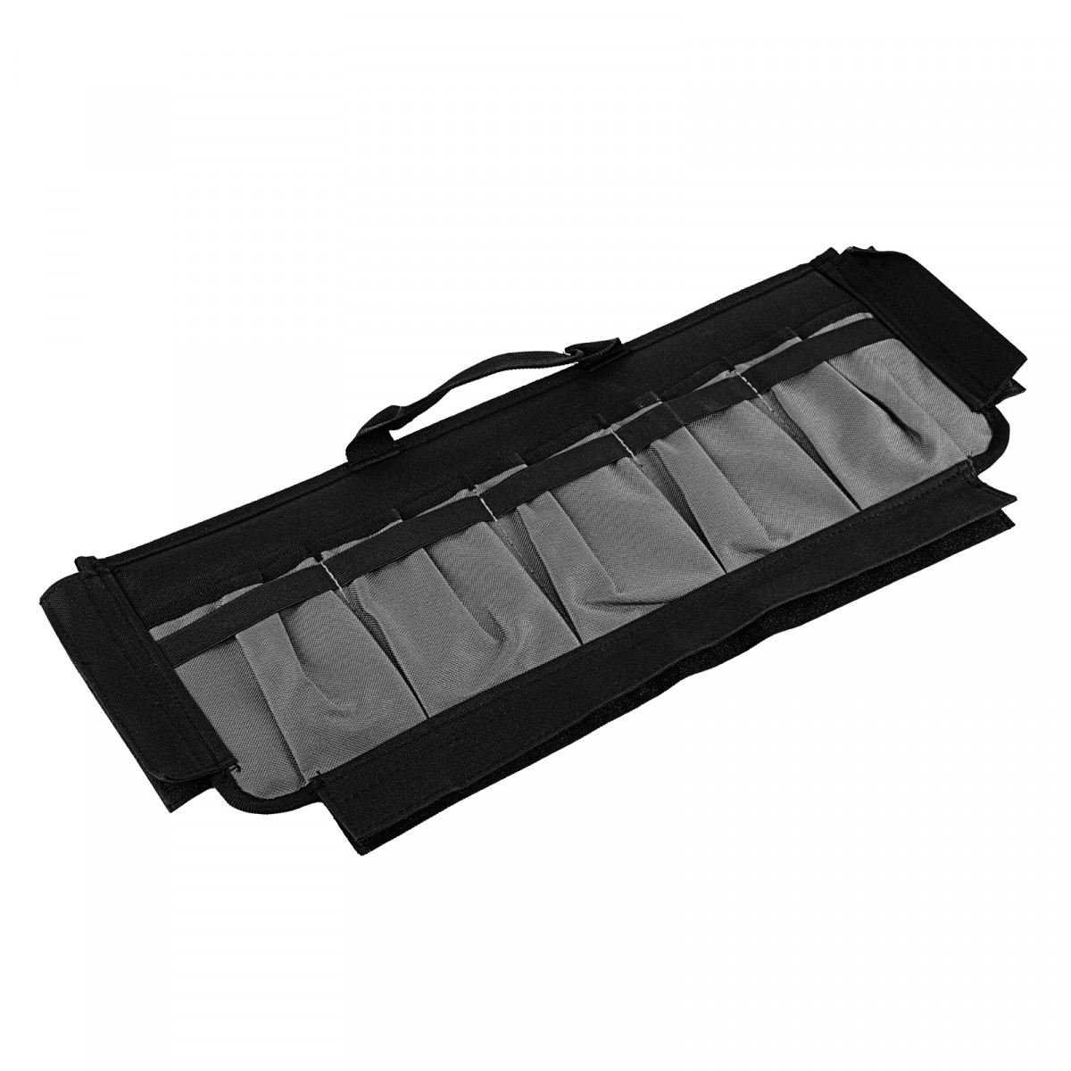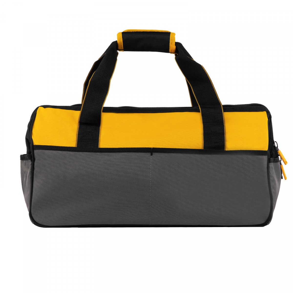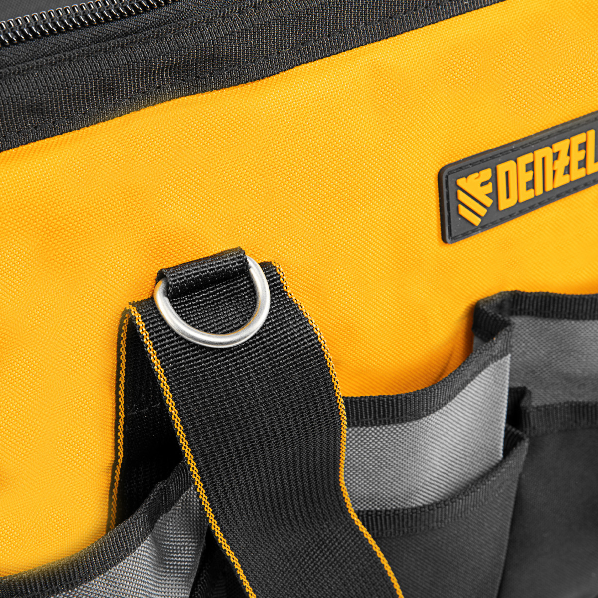 Сумка Denzel 90293 габаритами 500 х 245 х 300 мм с 20 карманами (в том числе съемным органайзером на 10 карманов) и наплечным ремнем, вмещает большое количество инструментов и используется для их хранения и транспортировки. Пригодится монтажнику, сантехнику, мастеру на выезде и автовладельцу.