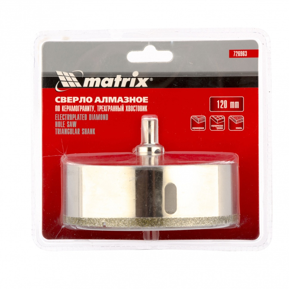 Сверло алмазное по керамограниту, 120 х 67 мм, трехгранный хвостовик Matrix