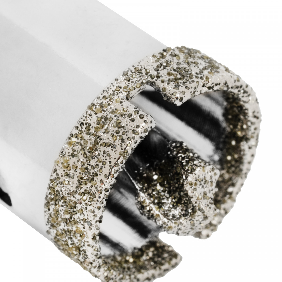 Универсальное алмазное сверло по керамограниту Matrix 726203 размером 20 х 67 мм, с 3-гранным хвостовиком, применяется для получения отверстий в стекле, плитке, кафеле. За счет высокой концентрации алмазов в режущем слое оно легко справляется со сверлением керамогранита. Сверло рассчитано на профессиональное использование с дрелями и шуруповертами. Водяное охлаждение в процессе работы значительно повышает срок службы оснастки.