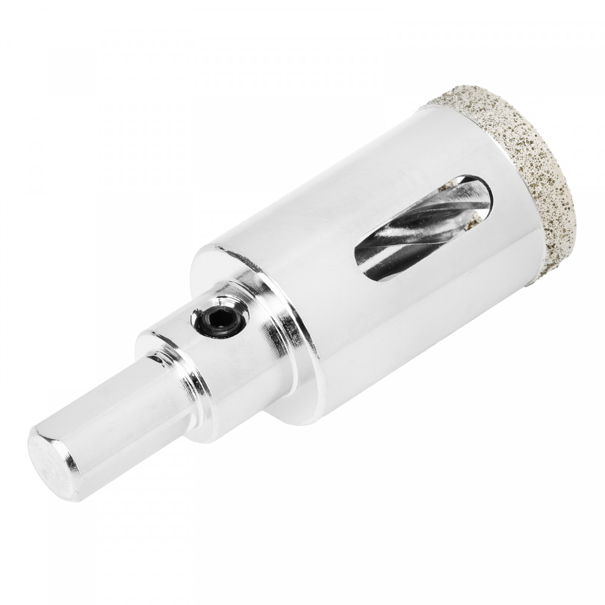 Универсальное алмазное сверло по керамограниту Matrix 726253 размером 25 х 67 мм, с 3-гранным хвостовиком, применяется для получения отверстий в стекле, плитке, кафеле. За счет высокой концентрации алмазов в режущем слое оно легко справляется со сверлением керамогранита. Сверло рассчитано на профессиональное использование с дрелями и шуруповертами. Водяное охлаждение в процессе работы значительно повышает срок службы оснастки.