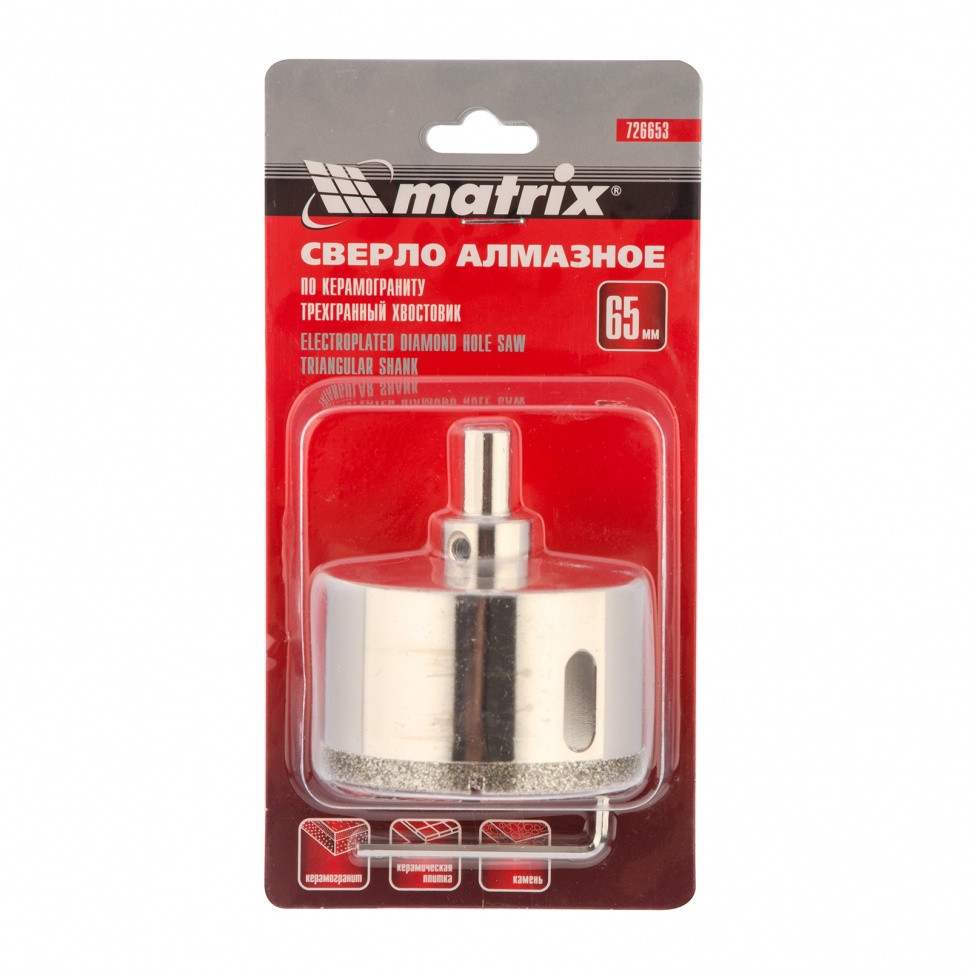 Сверло алмазное по керамограниту, 65 х 67 мм, трехгранный хвостовик Matrix
