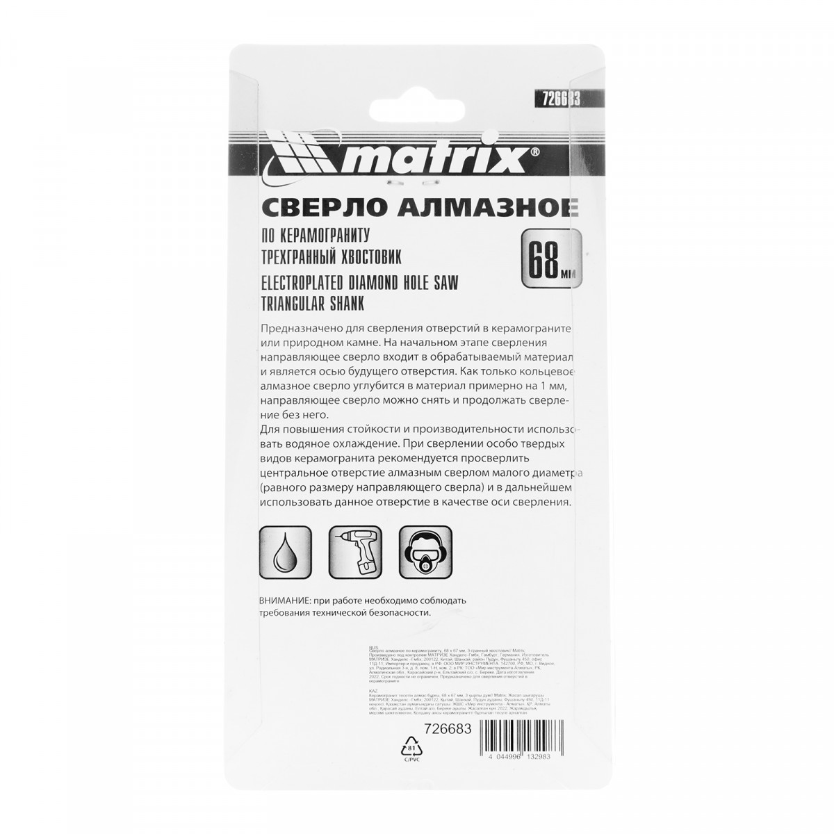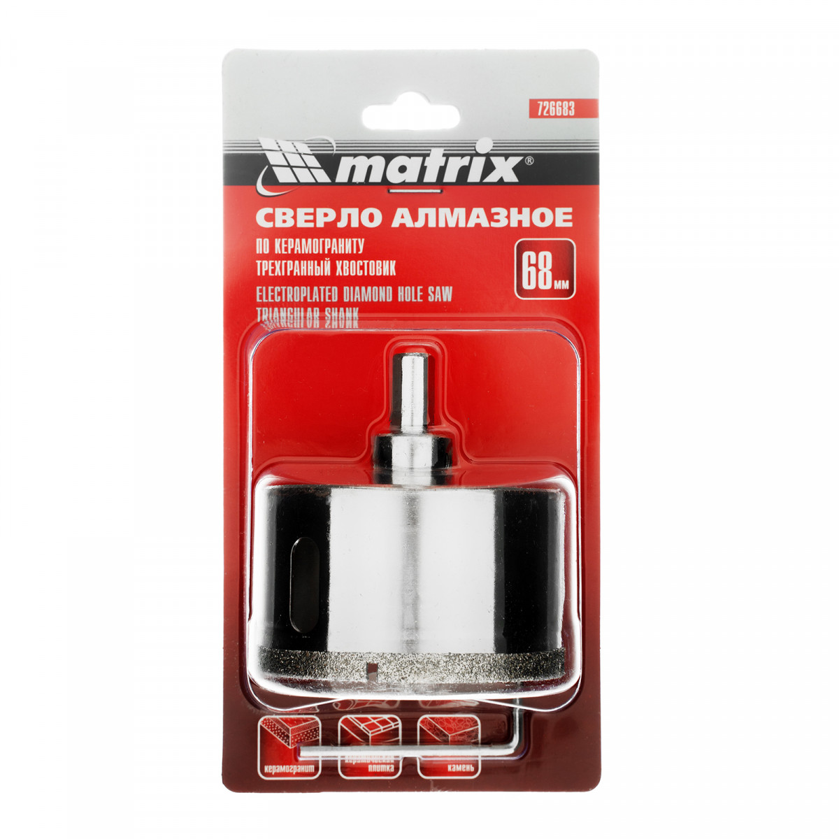 Сверло алмазное по керамограниту, 68 х 67 мм, трехгранный хвостовик Matrix
