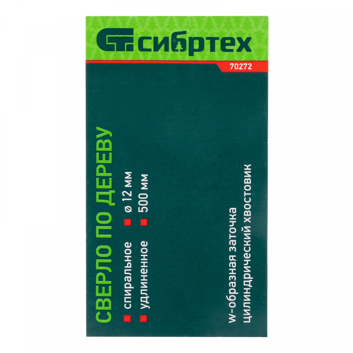 Сверло по дереву, 12 х 500 мм, цилиндрический хвостовик Сибртех