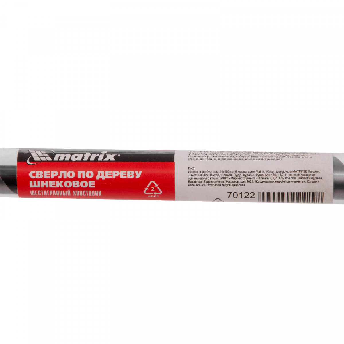Сверло по дереву шнековое, 14 х 460 мм, шестигранный хвостовик Matrix