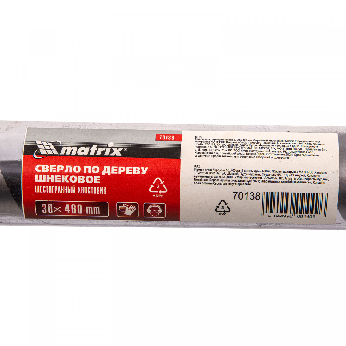 Сверло по дереву шнековое, 30 х 460 мм, шестигранный хвостовик Matrix
